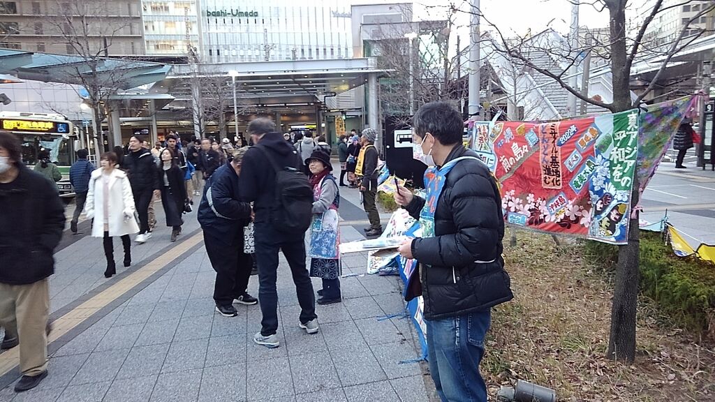 ◼️2026年1月17日(土)第1112回「大阪行動」を参加者12名で行いました。ご協力いただいた署名は24筆、受け取っていただいたチラシは約100枚でした。ご支援・ご協力ありがとうございました。