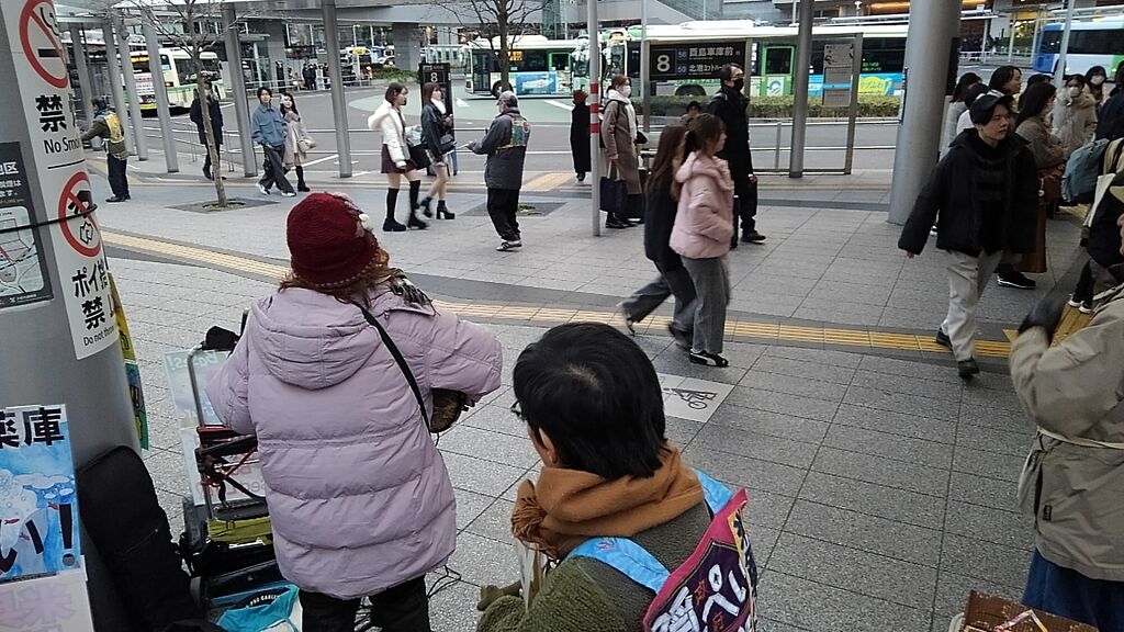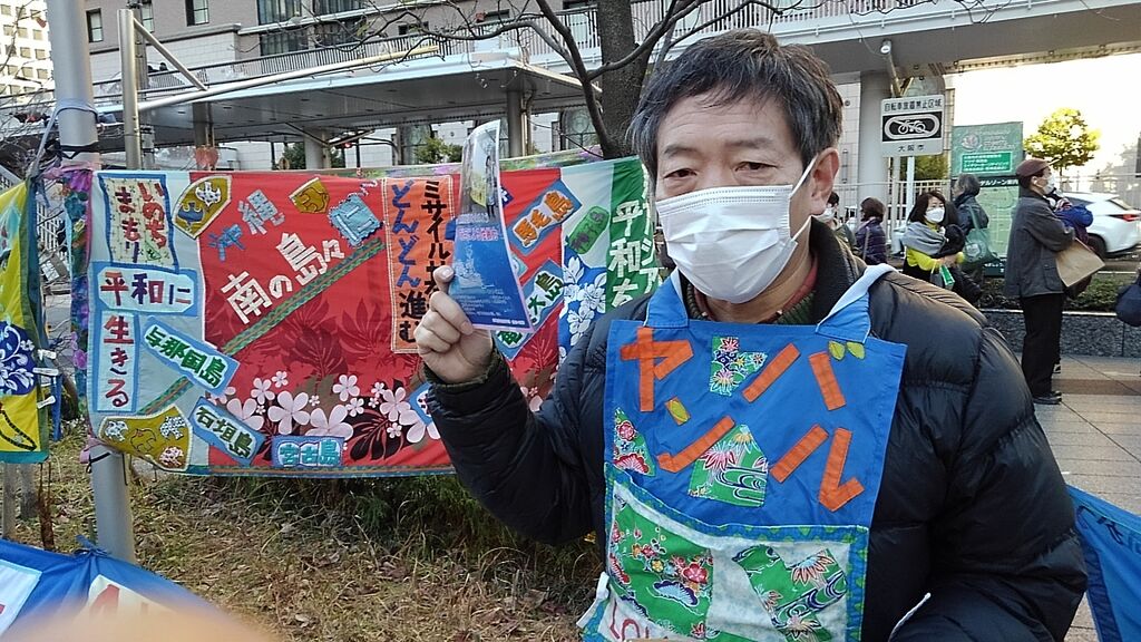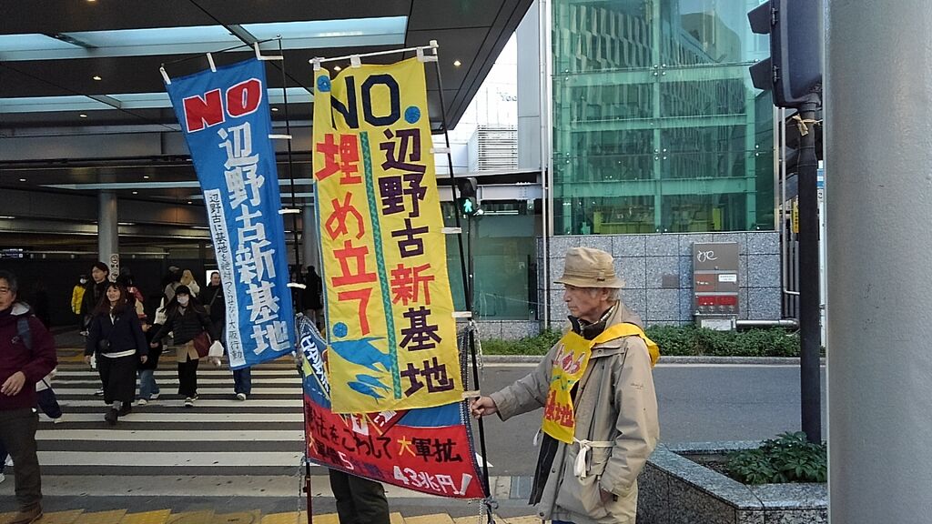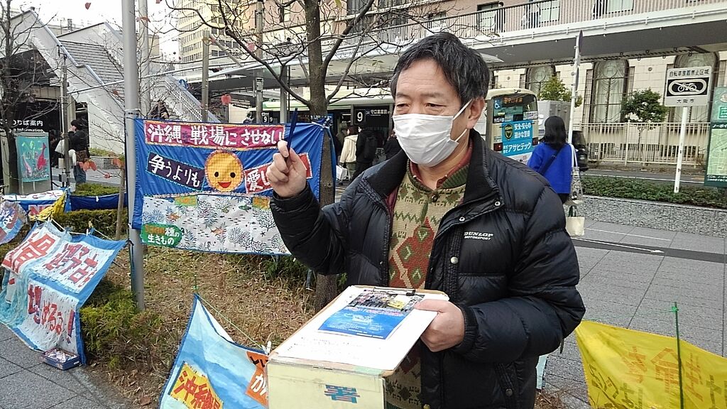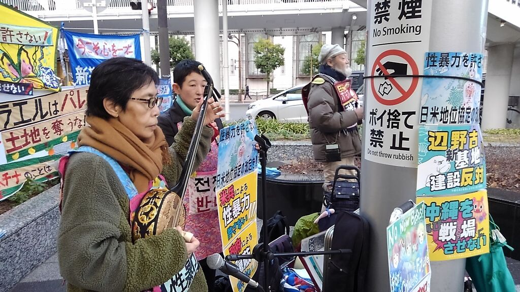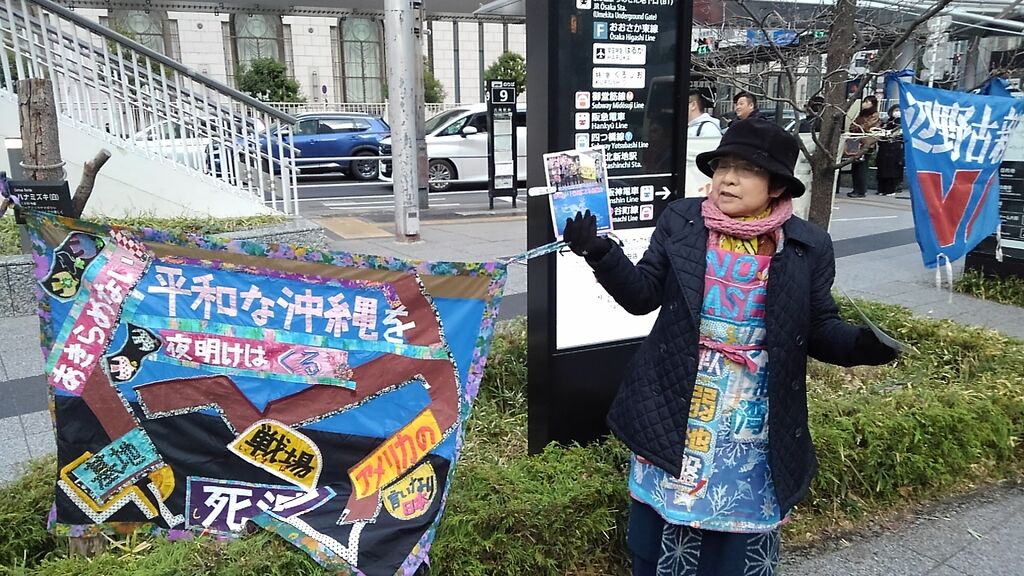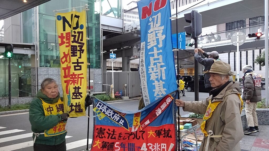 この日は比較的暖かく、衆議院解散総選挙や大阪での府・市長ダブル選挙の報道もあり、道行く人も政治に関心を寄せているのか、署名の際に沖縄に限らず高市政権や維新に対する批判の声が多くありました。尼崎で三線を習っているという方は辺野古新基地にも関心を寄せていますとおっしゃっていました。