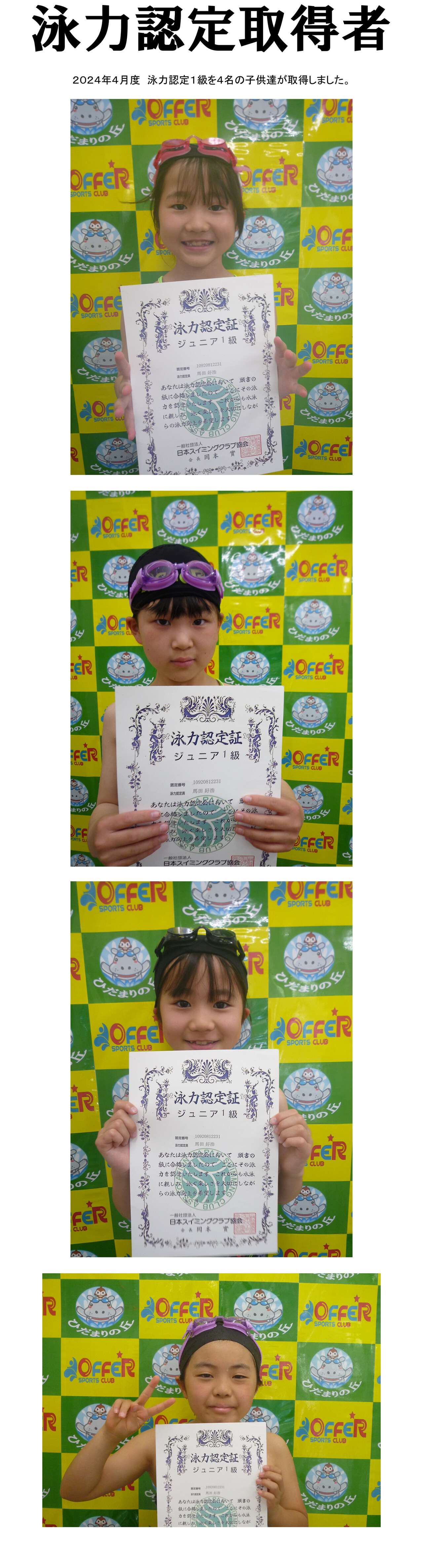 2024年5月度 泳力認定1級取得者