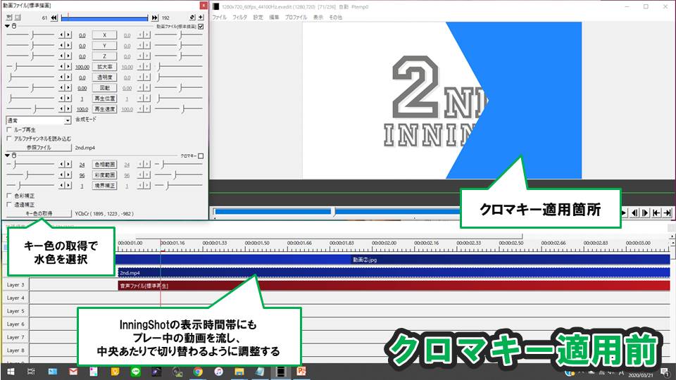 InningShot_002はクロマキーを使って水色の部分を透過する必要があります。