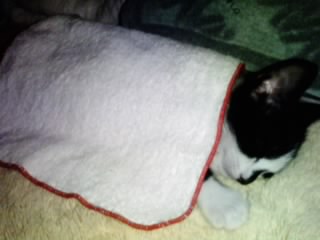 寝る前はいつもこんな感じ。初めてうちに来た日から、顔びしょびしょにしながらちゃんとお皿で飲んでくれてありがとう