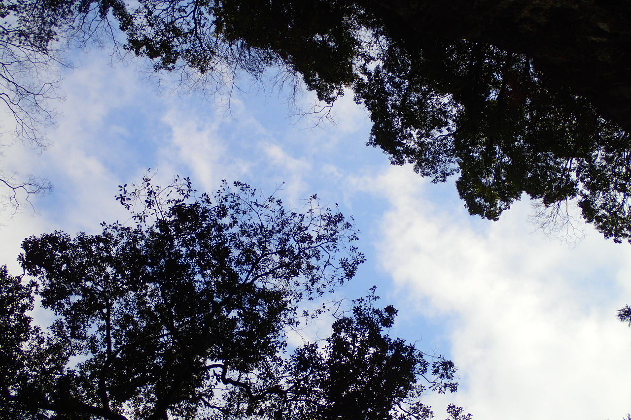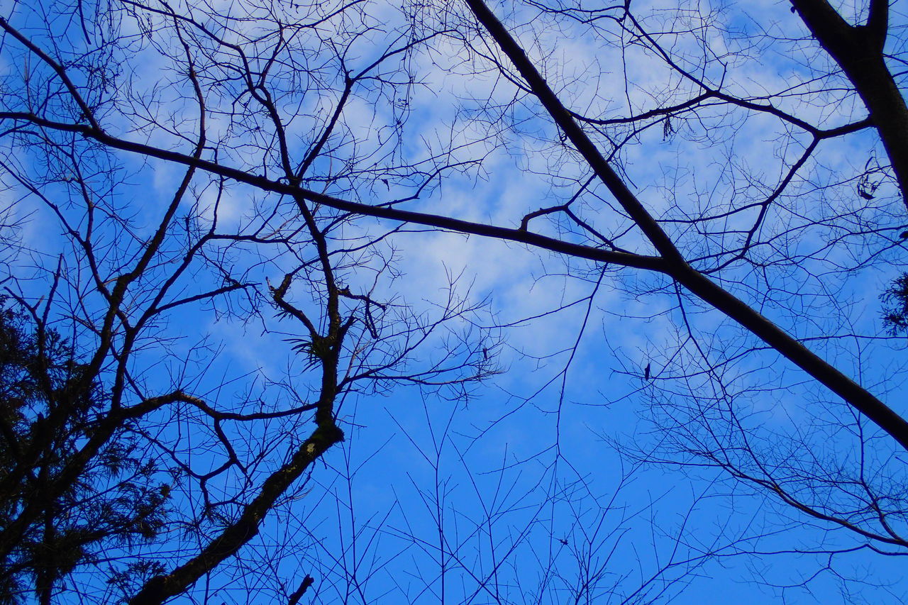 エリアは日陰で寒かったが、樹林帯の向こうには日が射している。