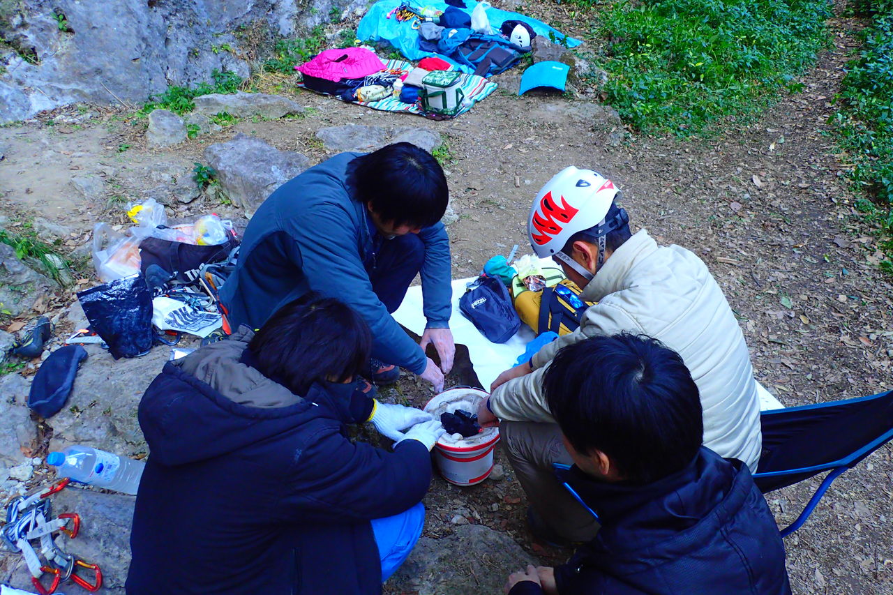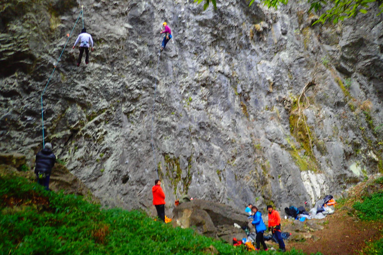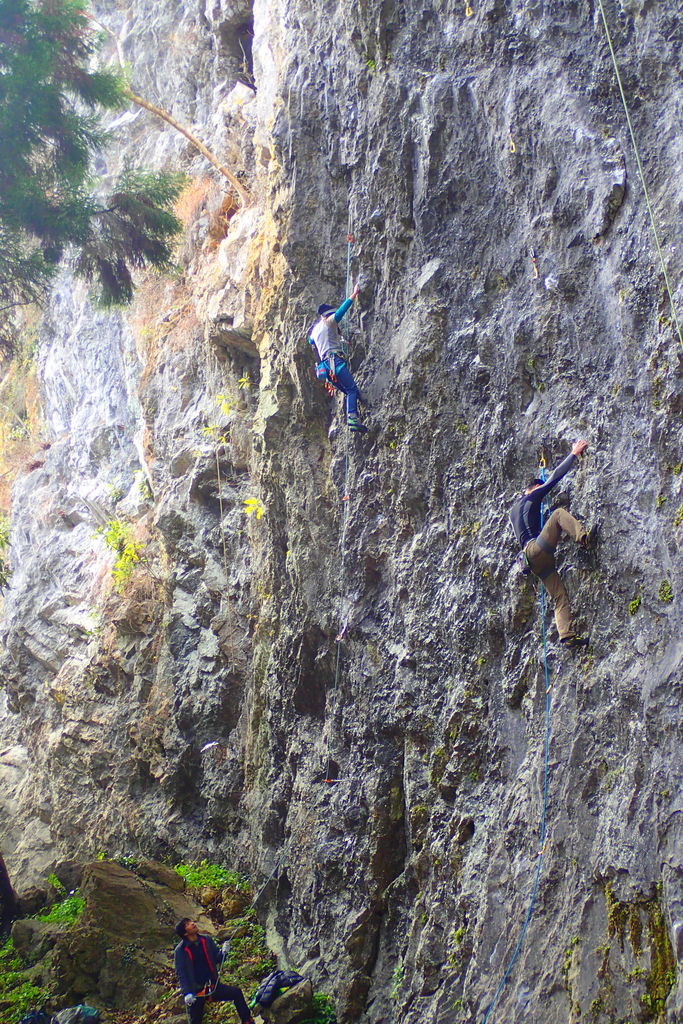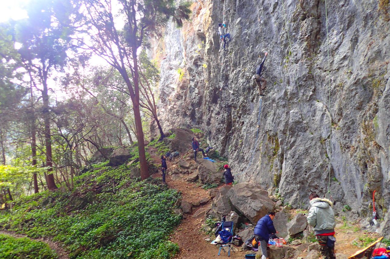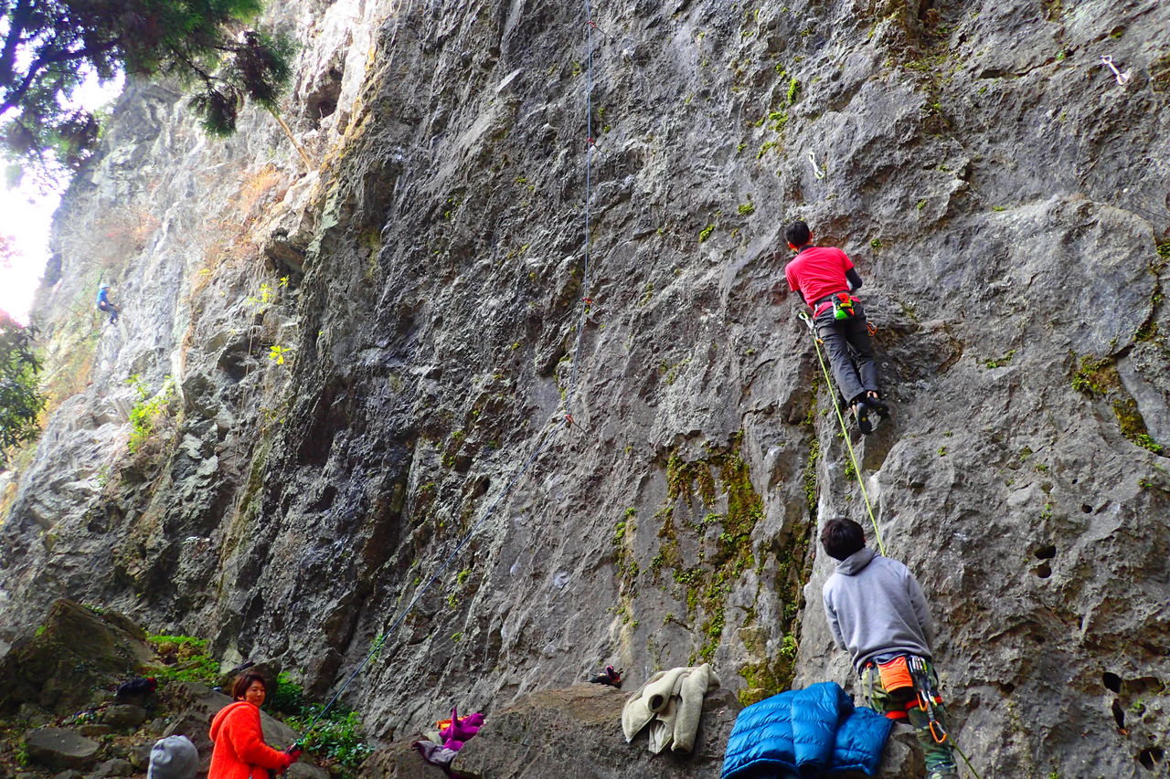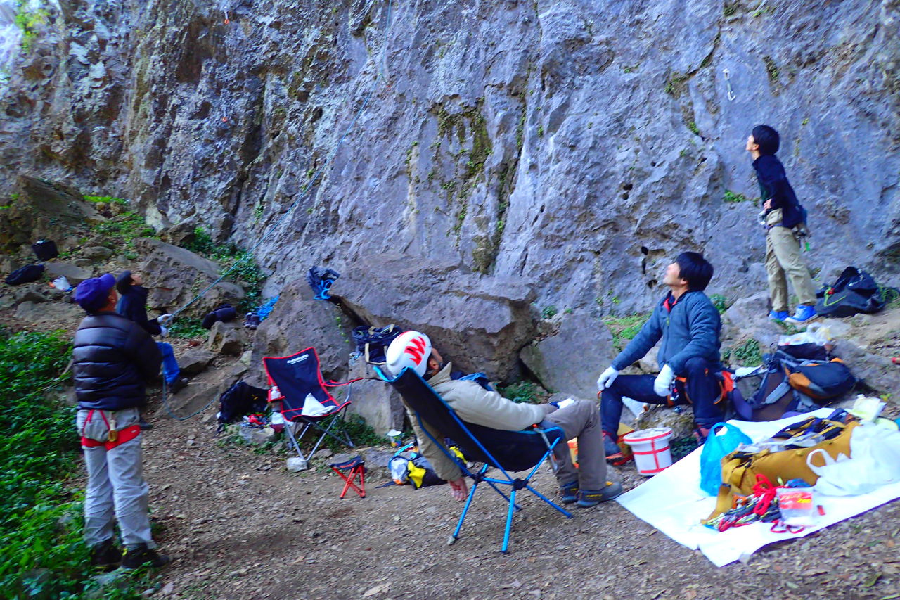 エリアイン、山口組さんはすでにクライミング開始。 Iさん・Oさんも移動してきた。