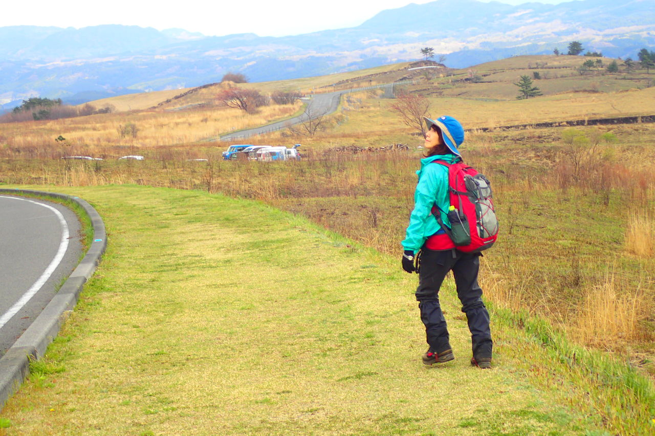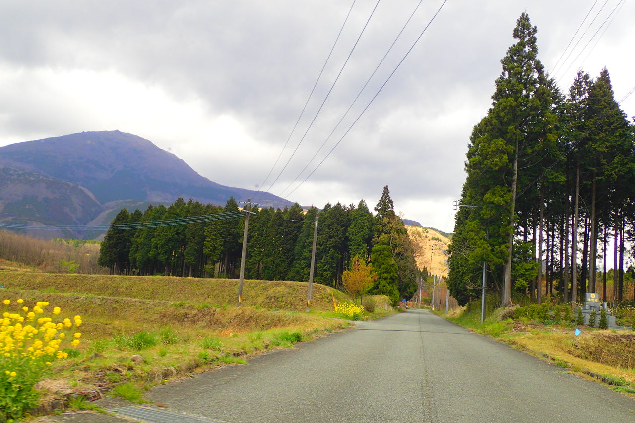 向こうに見えるのは○○クラブくじゅう、ここから登山口まではほぼ