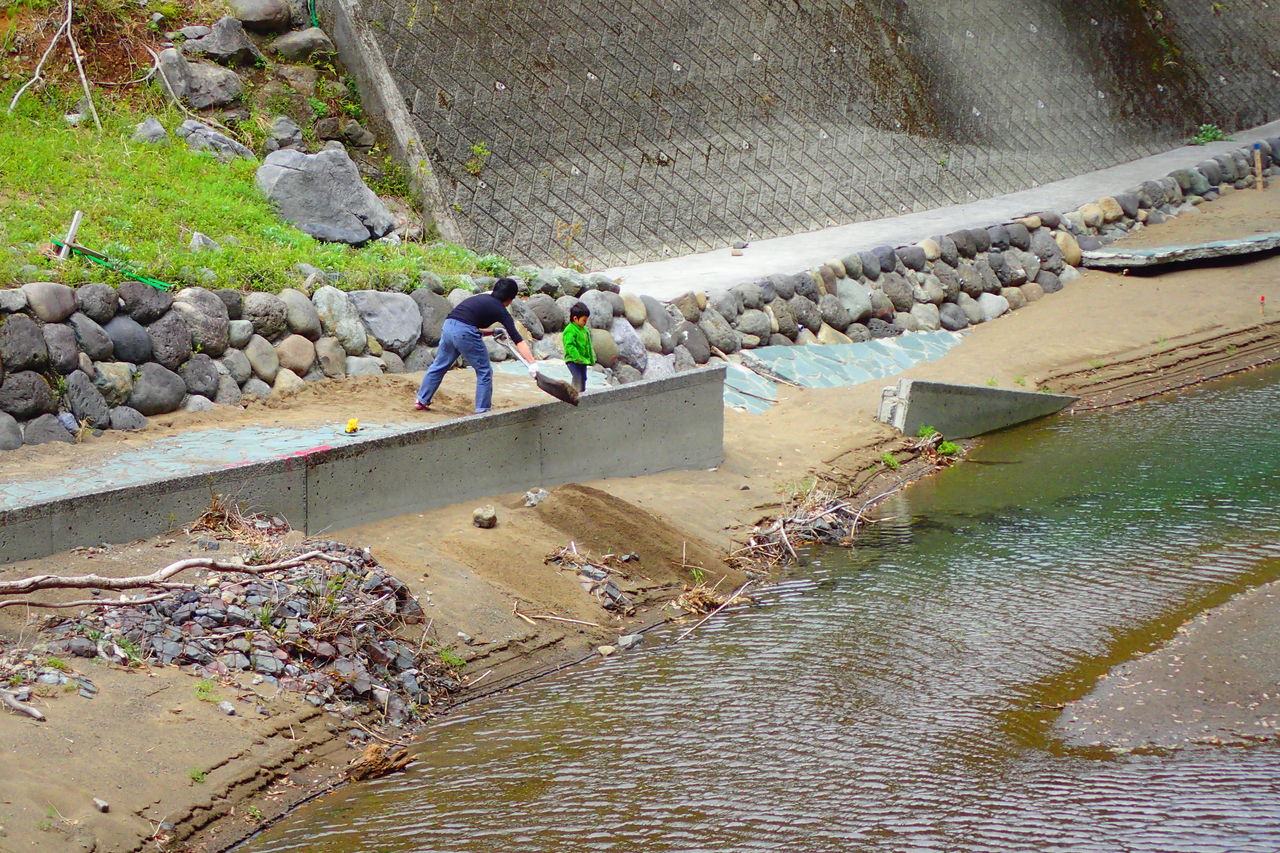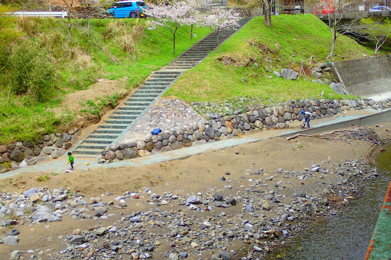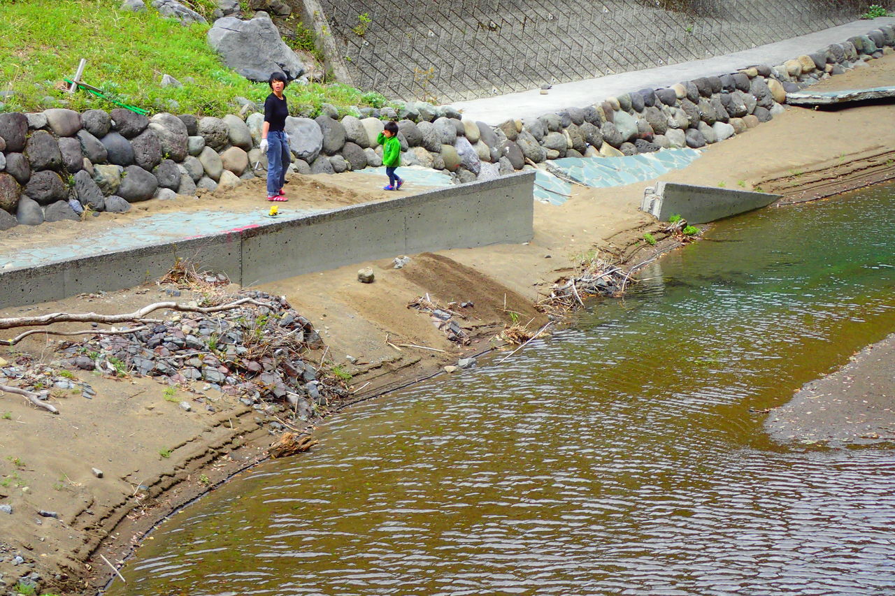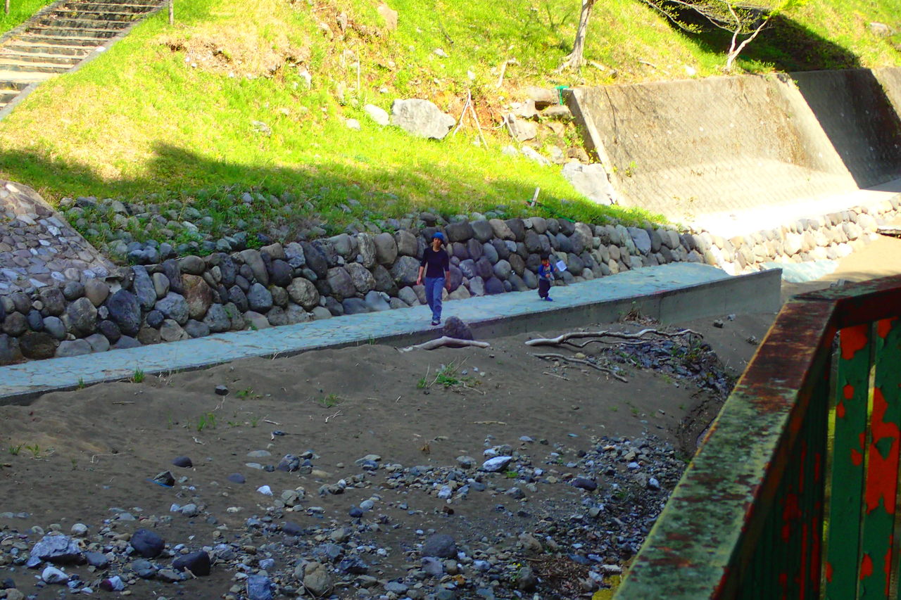 中央の土砂を敷き詰めている所は台風や雨により深く浸食され
