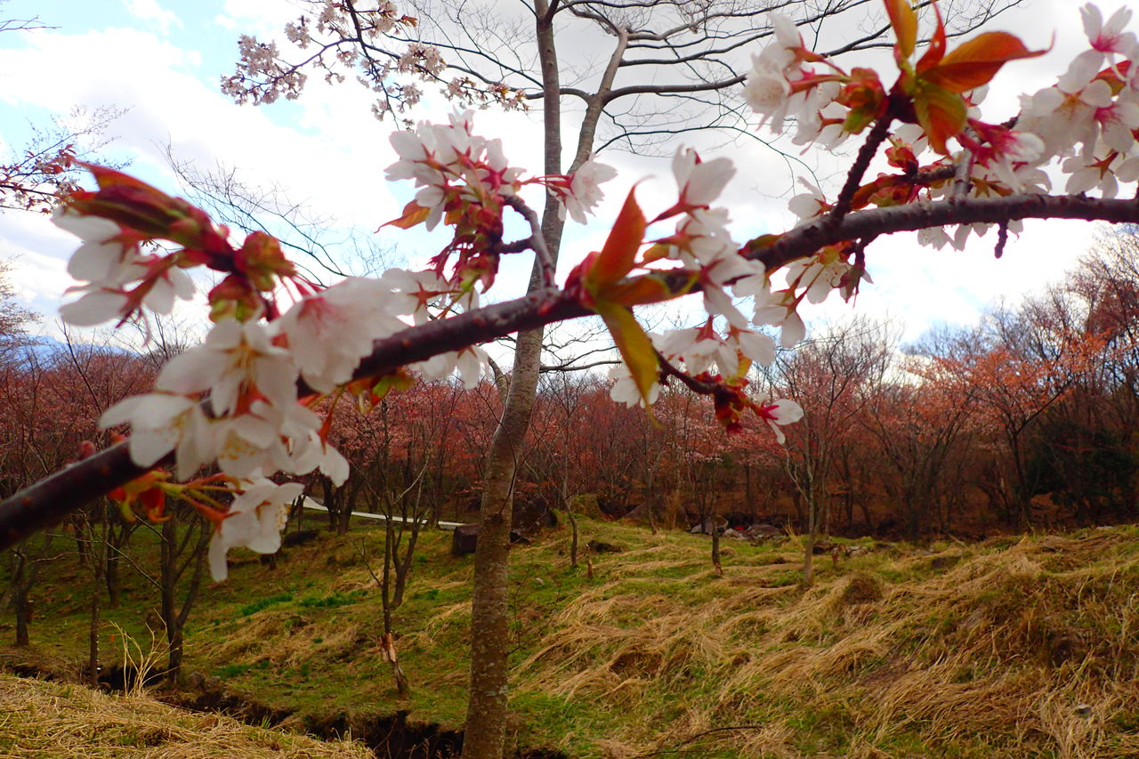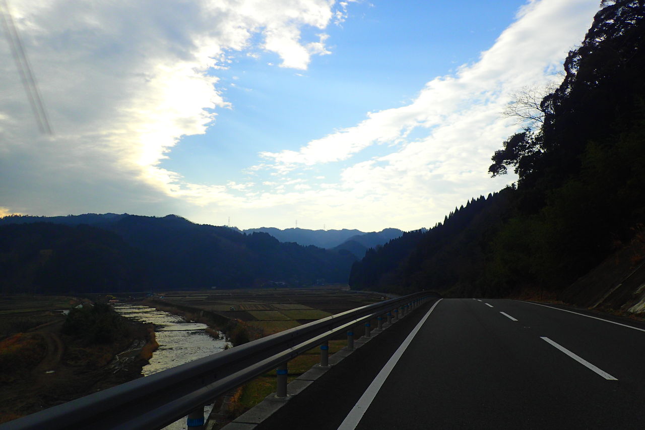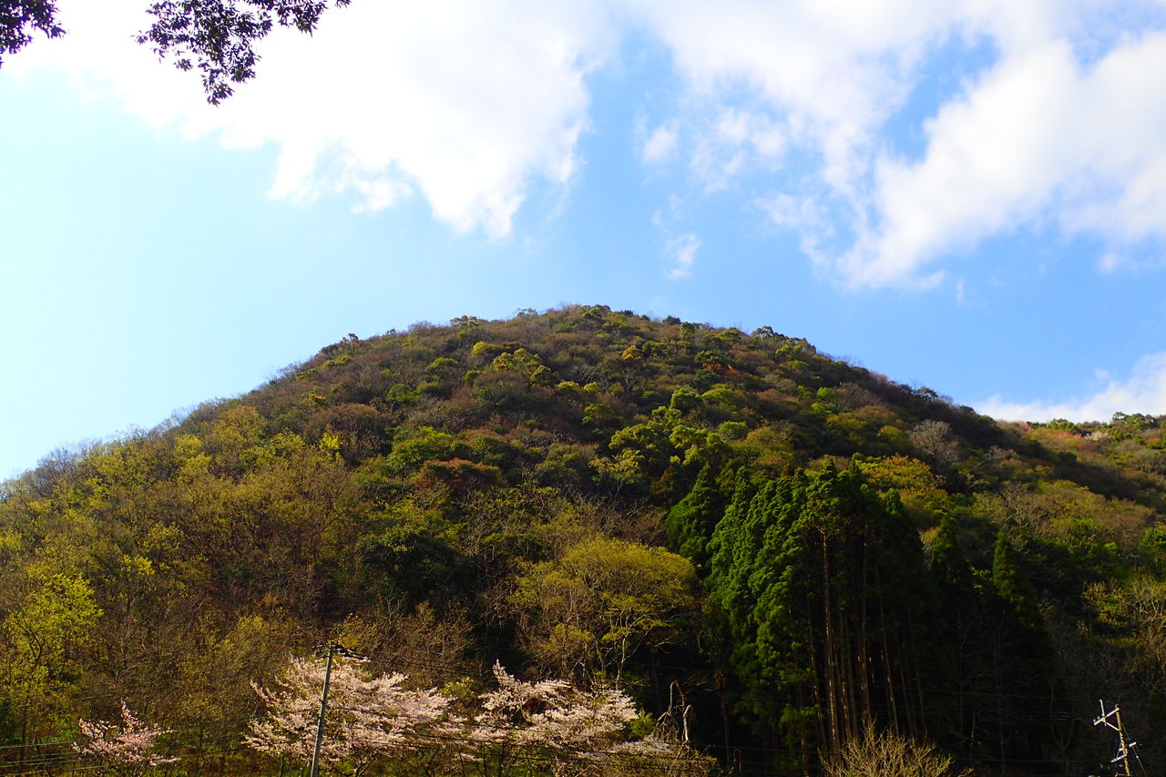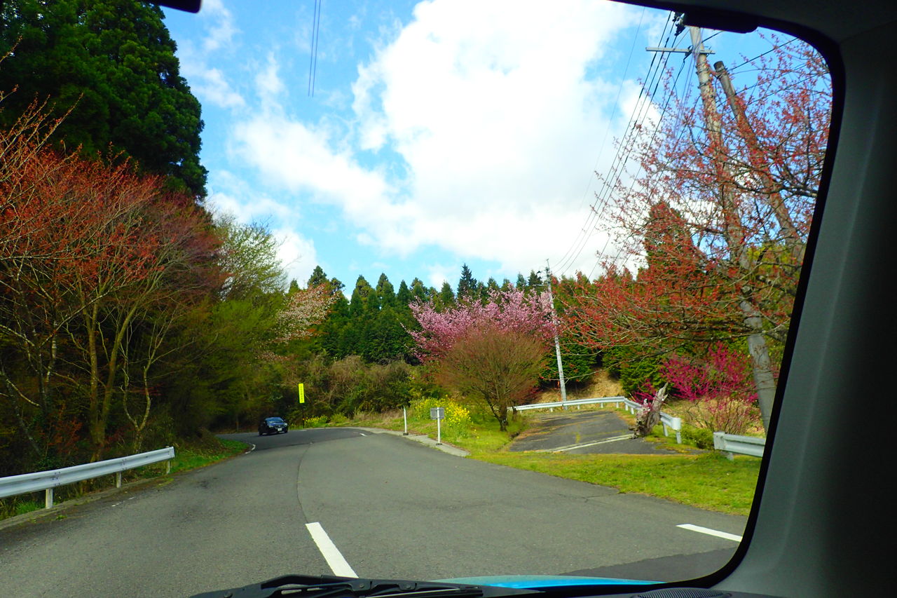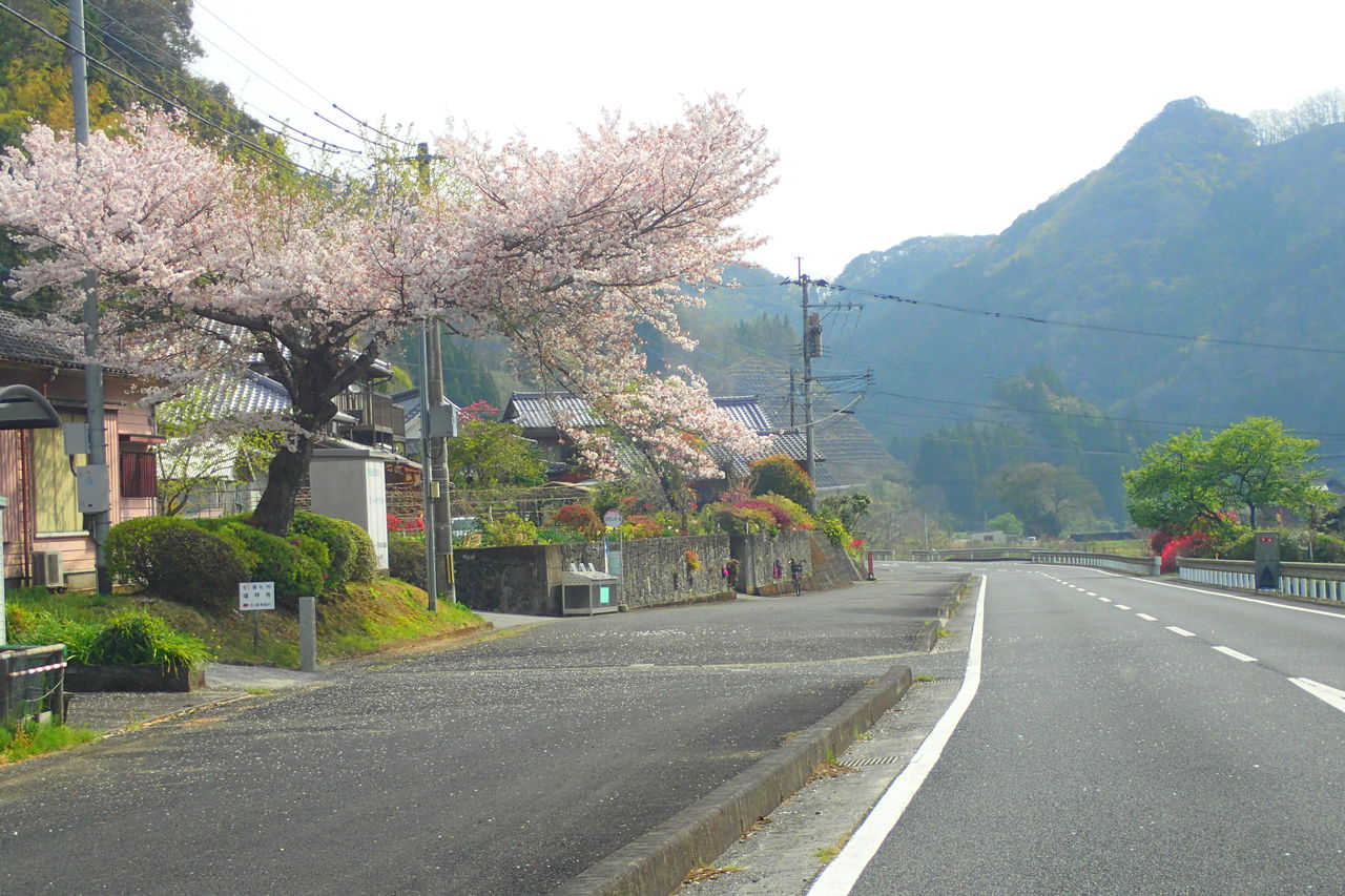 楯ヶ城トンネルを越え、本匠・堂の間。道路脇の桜