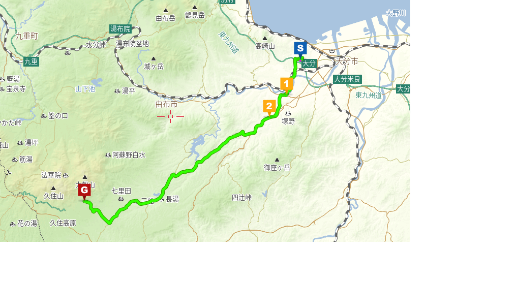 ○○クラブくじゅう駐車地⇒徒歩で一番水登山口。