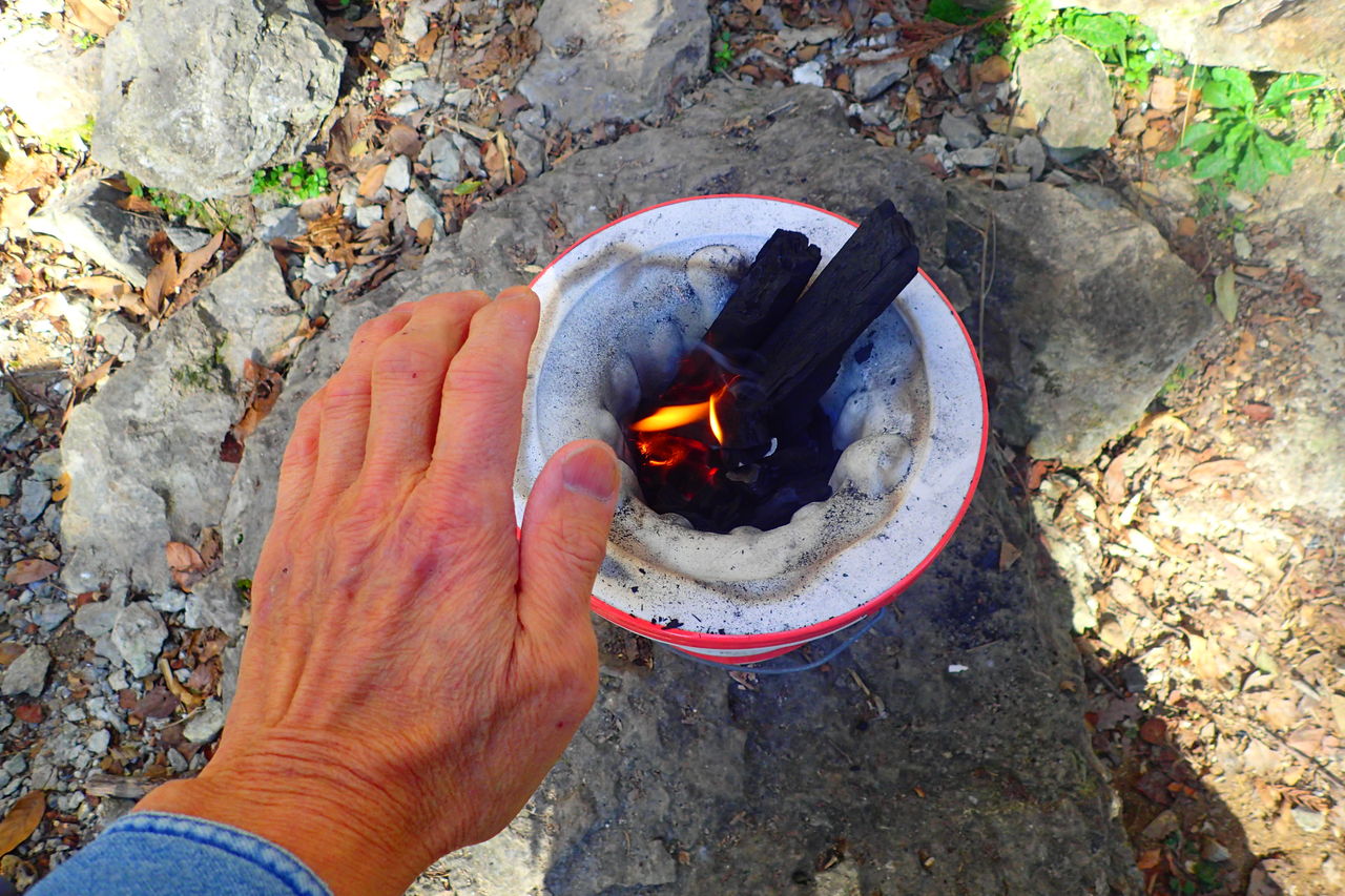 昨日よりも気温は上がるがやはり寒い。 Moさん持参火鉢に火