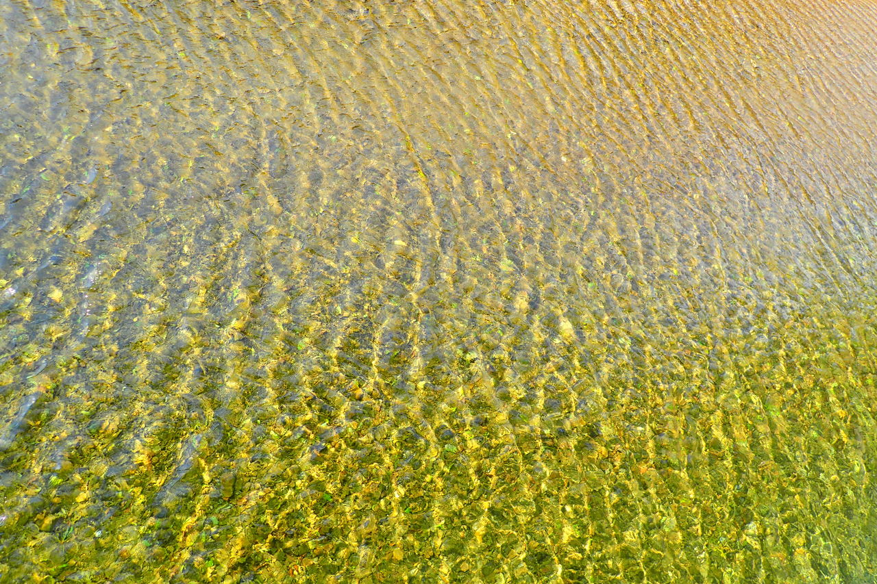 普通のス二ーカーで濡れずに渡渉可能となっている。