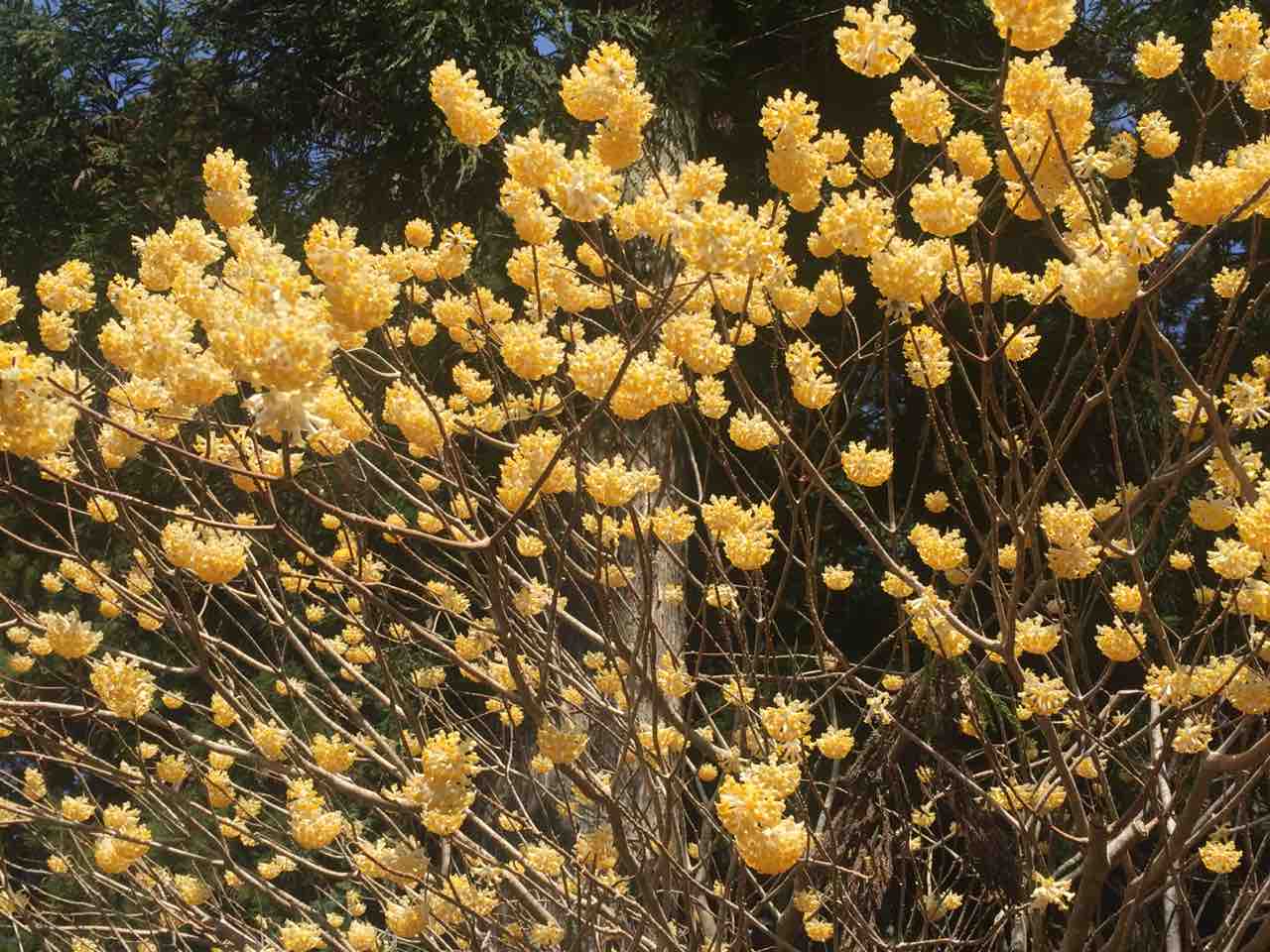 道路沿いにはミツマタが咲いています。