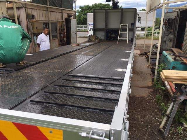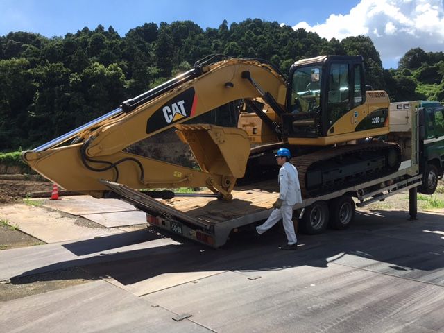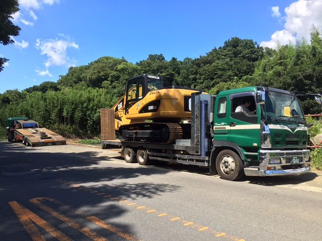 納車先が、トレーラーでの搬入不可の為現場の近くで大型に乗せ換えての搬入になりました