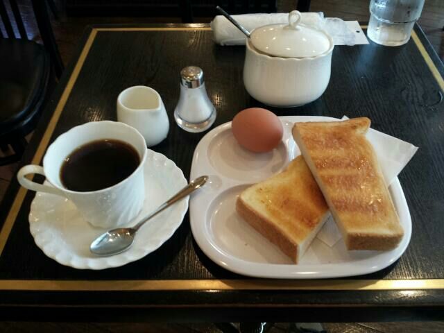 店主と、目だけの合図で、モーニングセットが運ばれてきます。