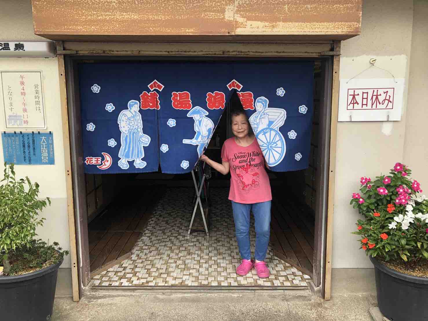 《大正湯さんの入り口、おかみさんの名手さん》