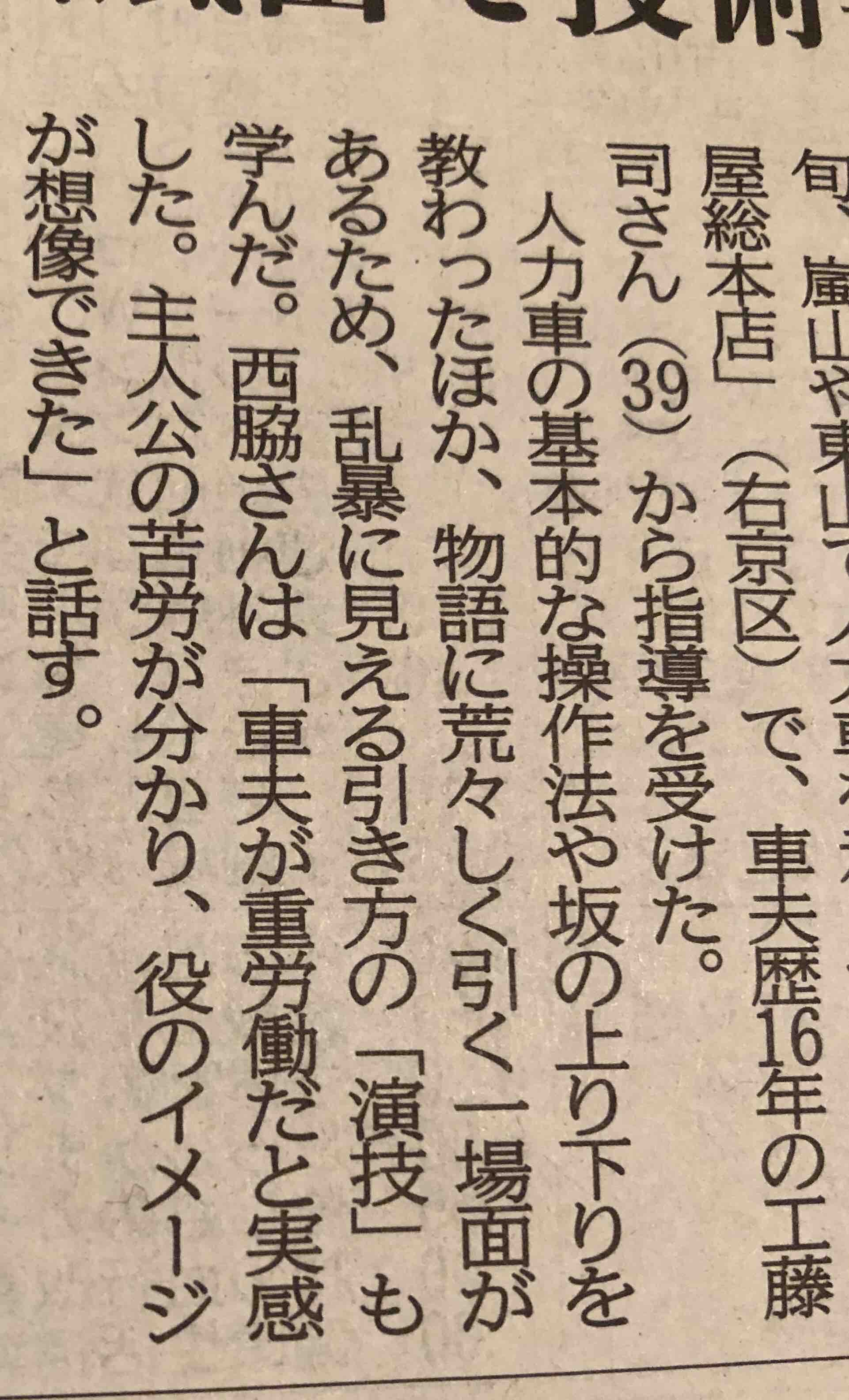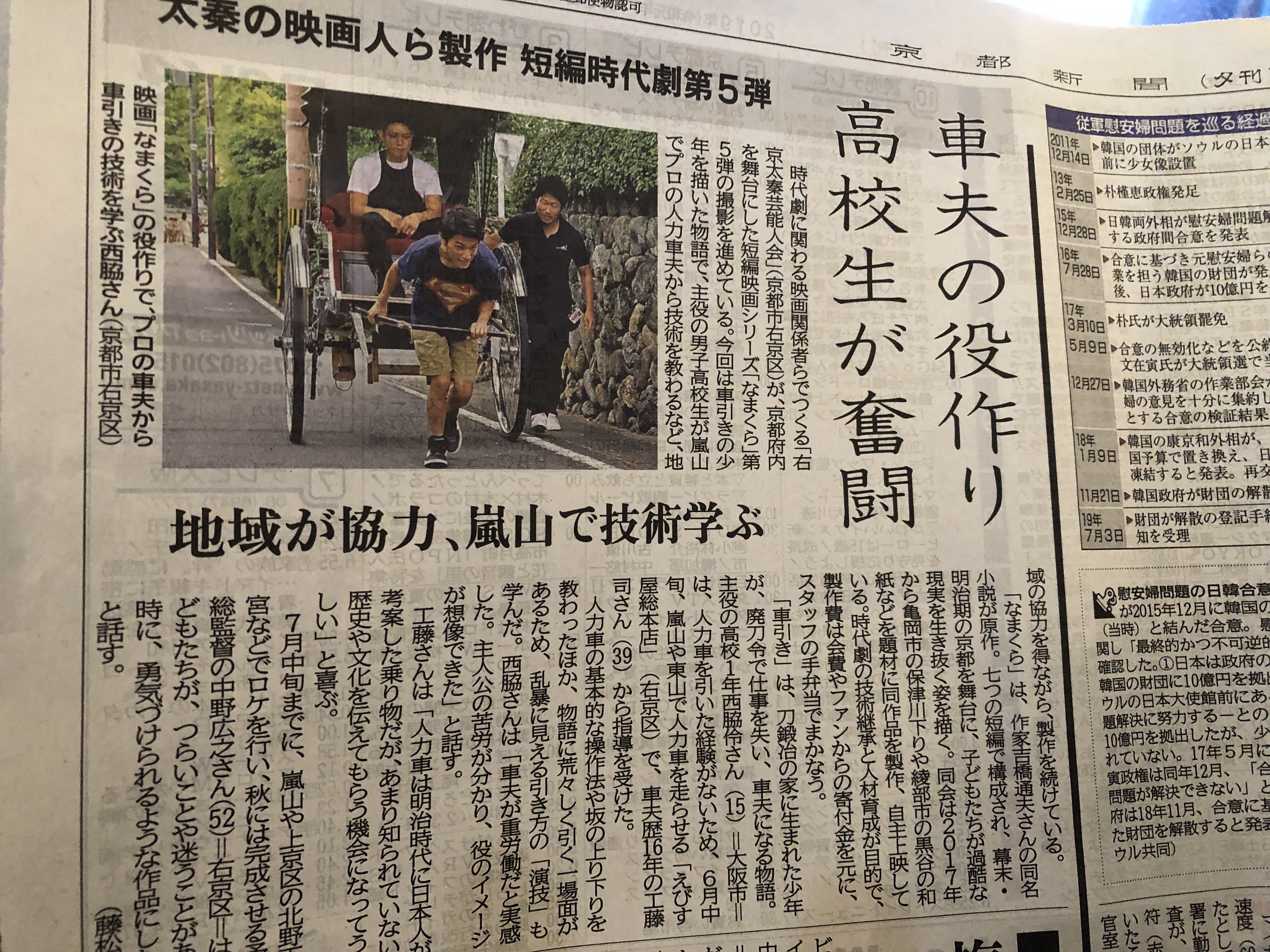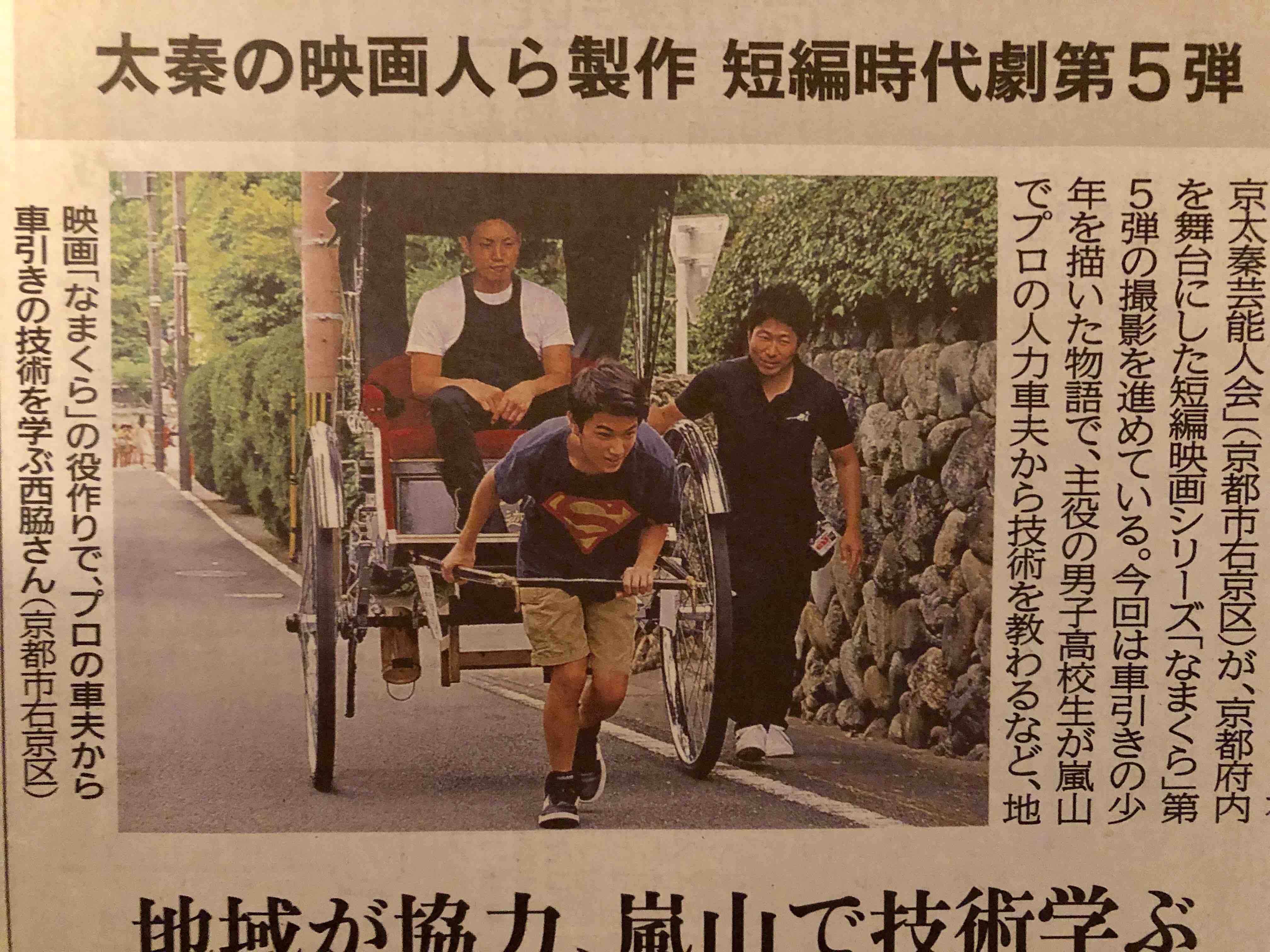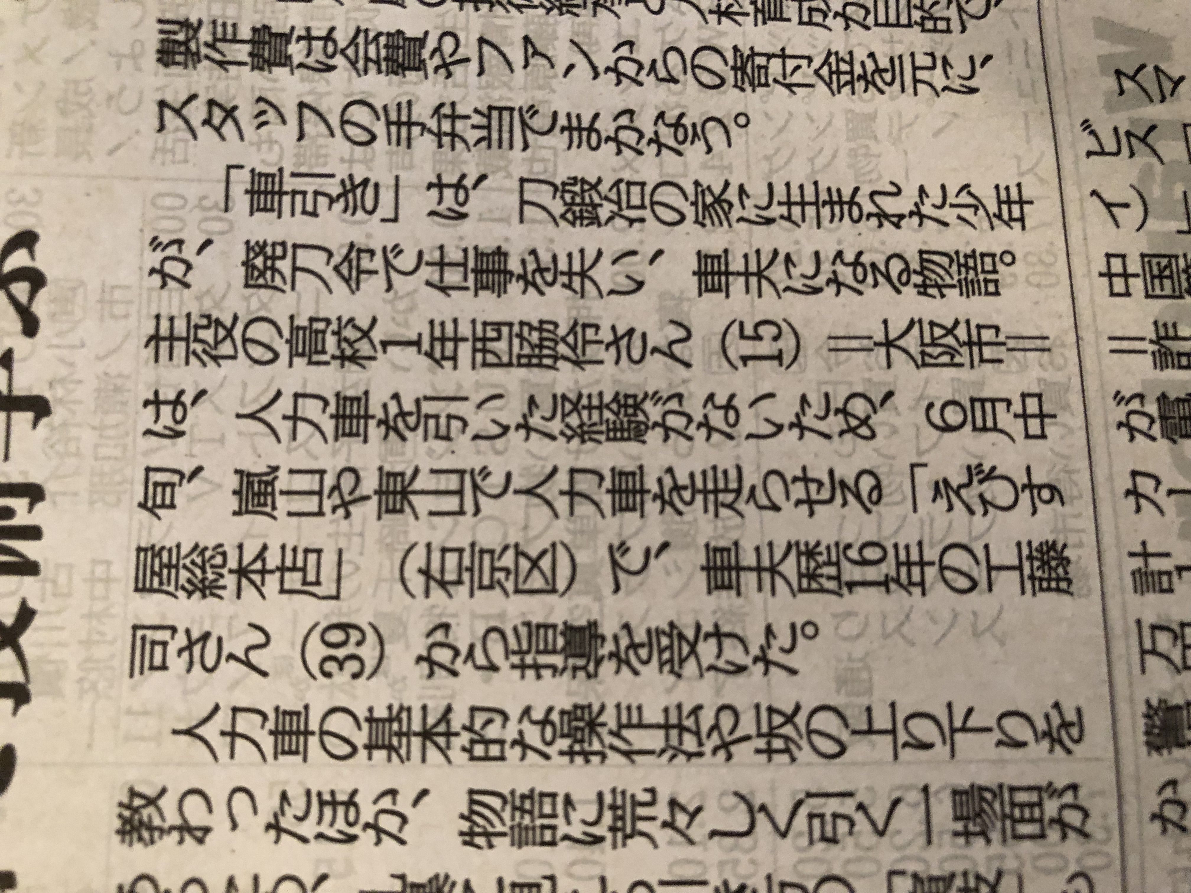 “車引き”人力車トレーニングの様子が京都新聞に掲載されました!