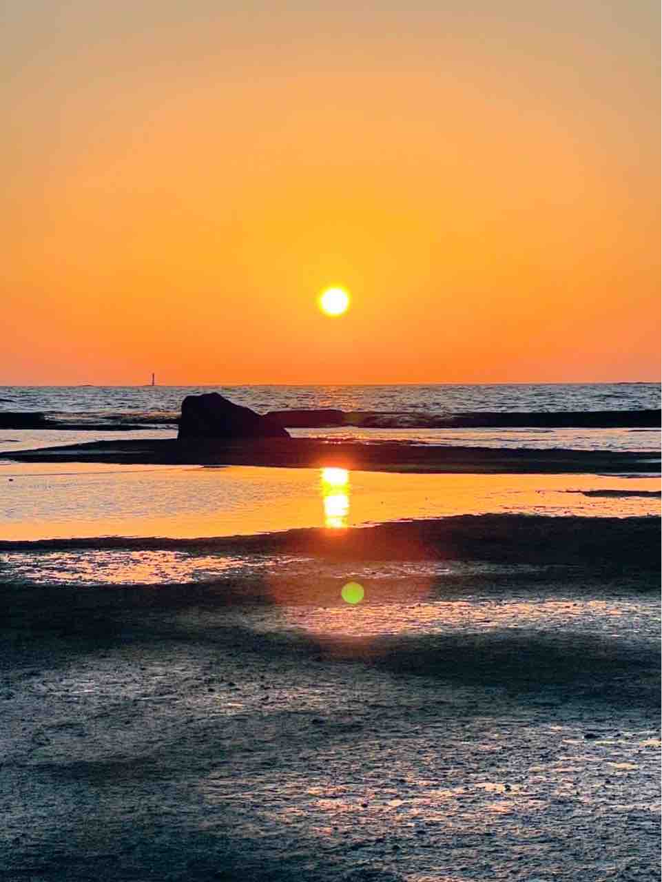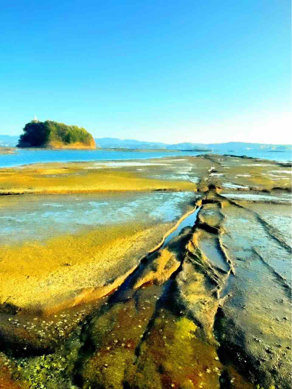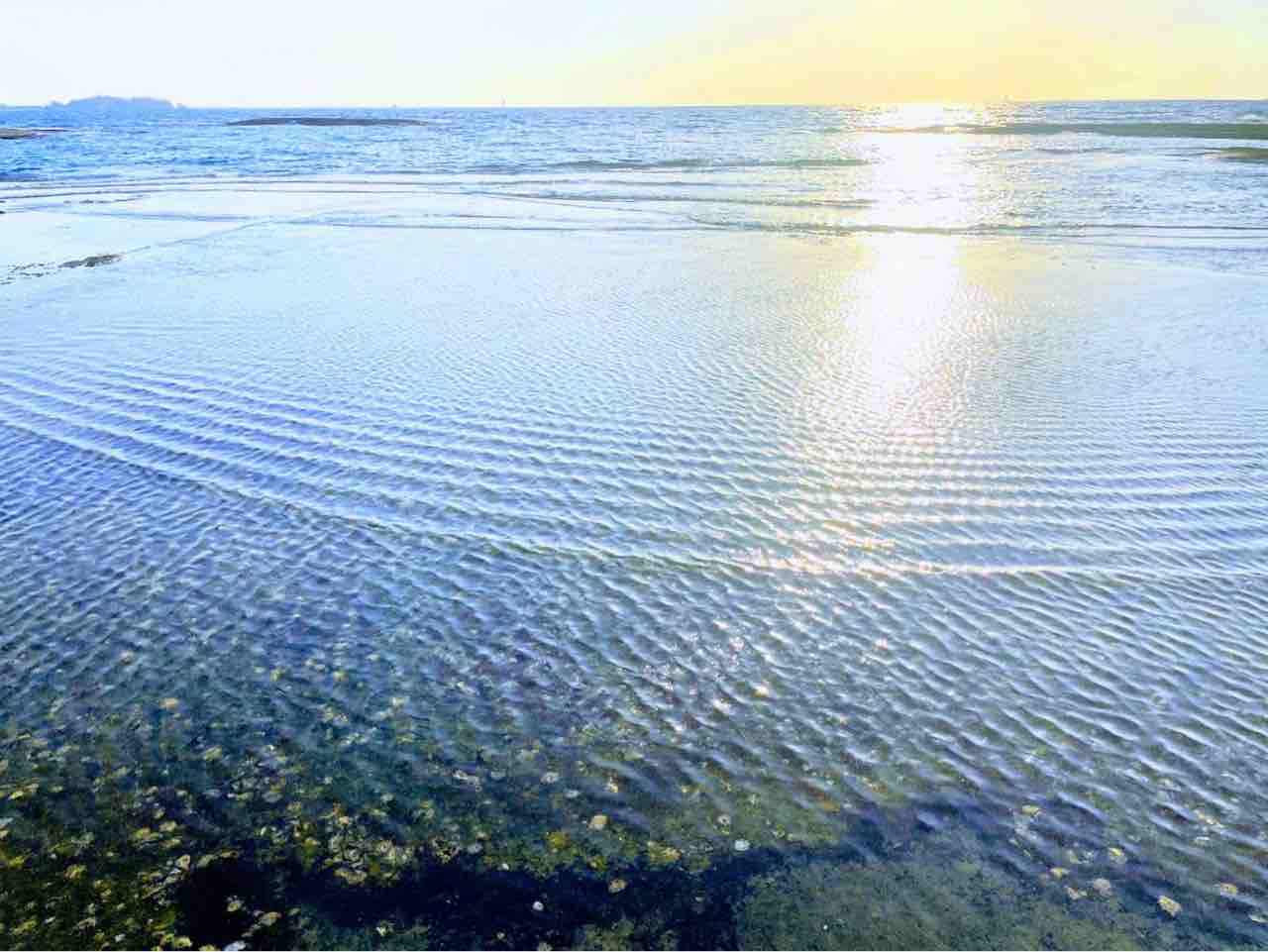潮の満ち引きにより、平らな岩礁に溜まった海水が鏡の様になり