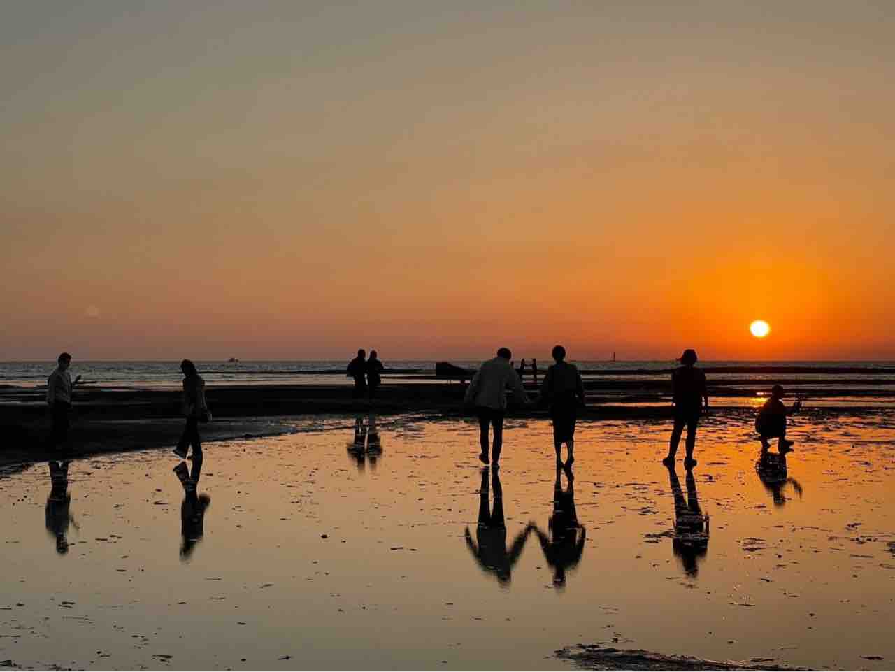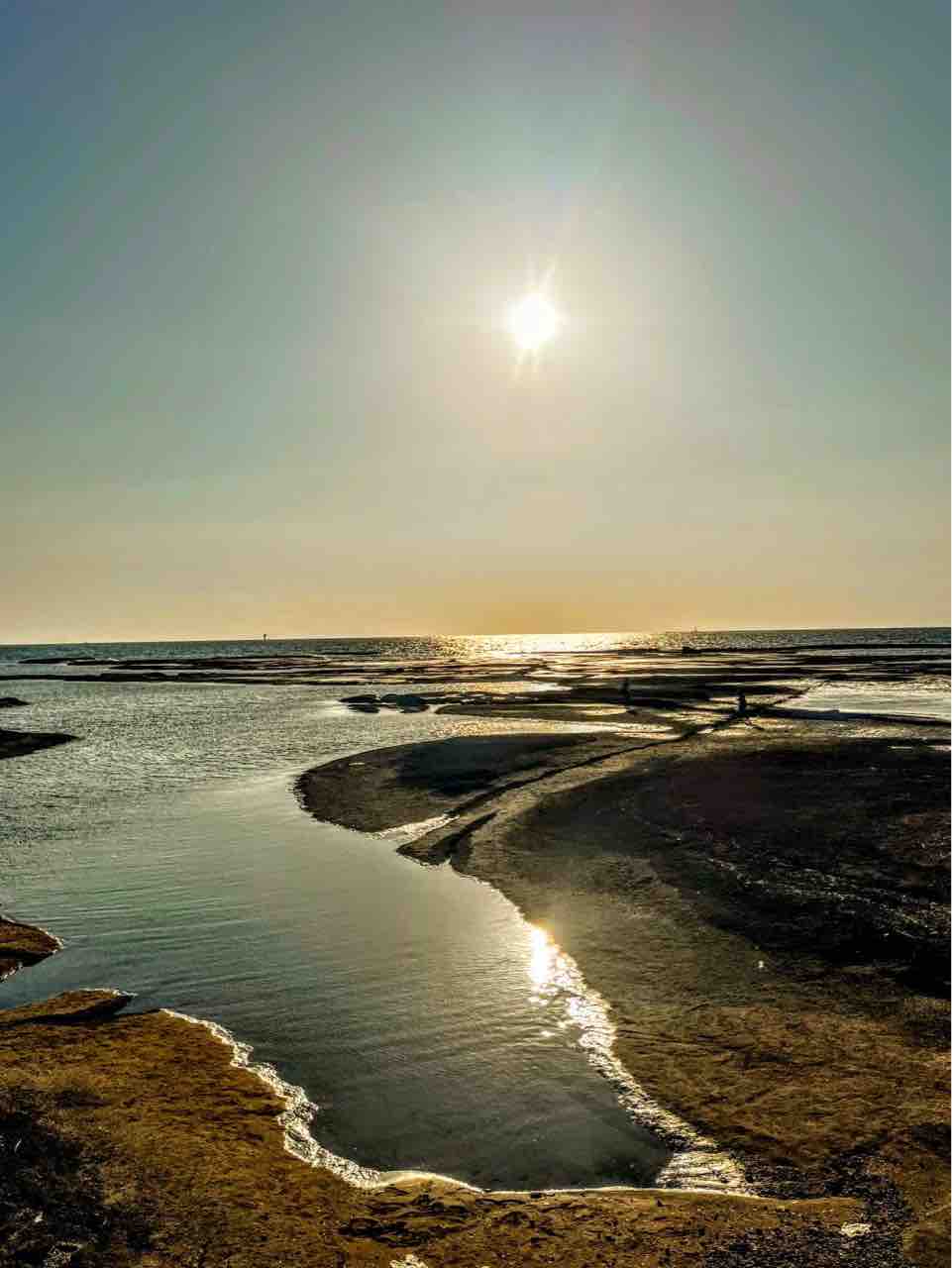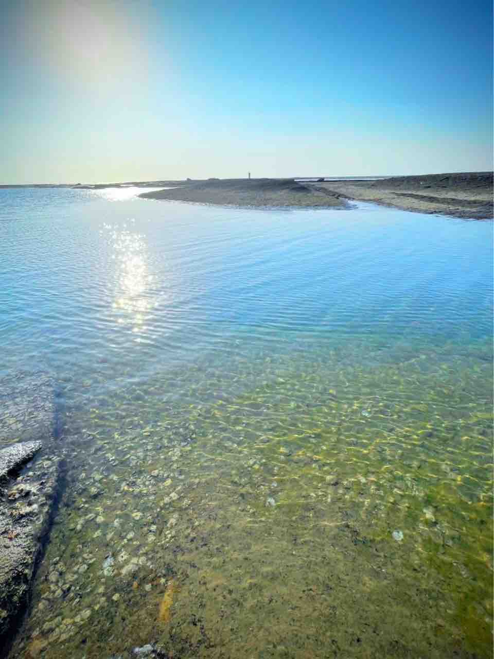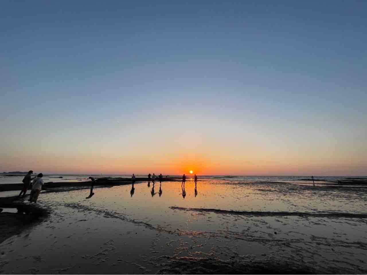 潮の満ち引きにより、平らな岩礁に溜まった海水が鏡の様になり