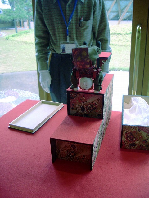 弁吉の発明になる「茶運び人形」の実演もあり、お子さん、お孫さんを連れて訪れるにはうってつけの施設です。写真は「段返り人形」の妙技。宙返りしながら階段を下りてくるわけですが、水銀が「カラクリ仕掛け」の決め手なのだとか。
