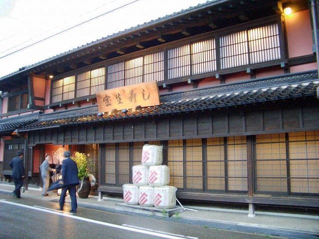 本日の締め括りは「宝生寿し」。メンバーの中に、この建物の設計者がいて、保存・再生の苦労話などお伺いする予定でしたが、1階の見せ場は満席で、解説もそこそこに、そそくさと予約してある2階の座敷に移動、美味しいお魚と美味しいお酒の宴会モードに突入したのでありました。