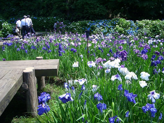 昼食後は、今が盛りの「花菖蒲園」を鑑賞してから、
