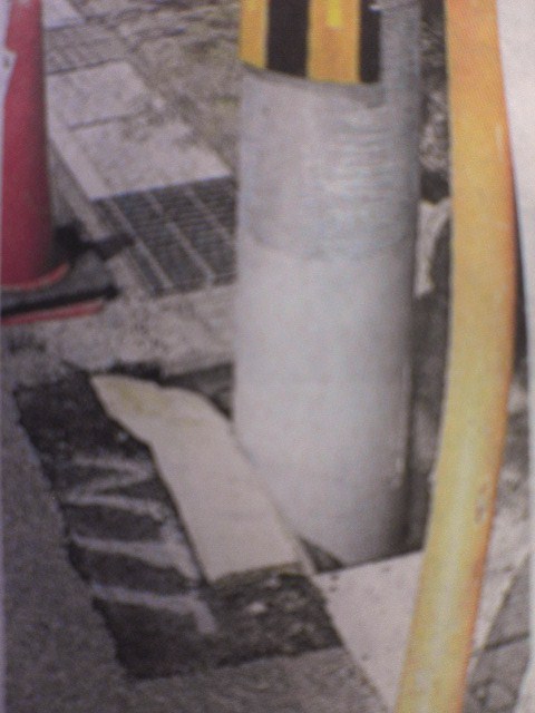 「地盤が固く、現場の勝手な判断で側溝に立て」て、