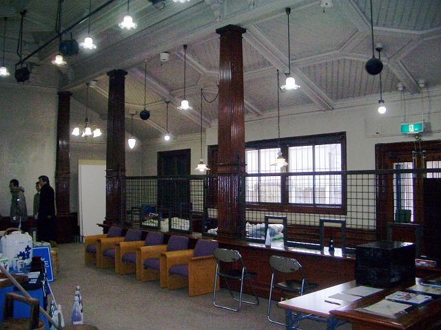 「狭い客溜り」の「高いカウンター」には「金網」まで張られていて、「お金を貸してやる」という高飛車な雰囲気に満ち溢れており、「お預かりさせていただきます」という低姿勢を露骨に示そうとする平成の金融機関のデザインポリシーとは隔世の感がありますが、根本の部分ではあまり変化がないような気もします。