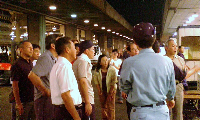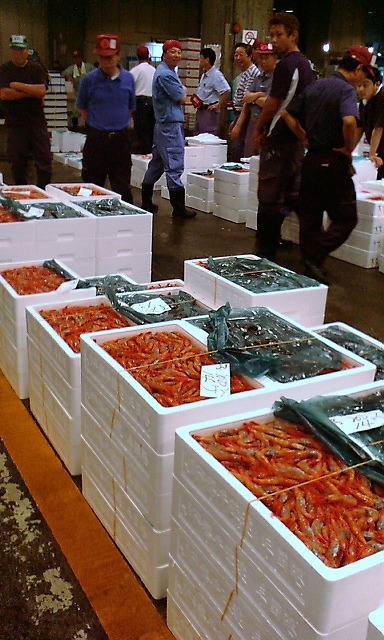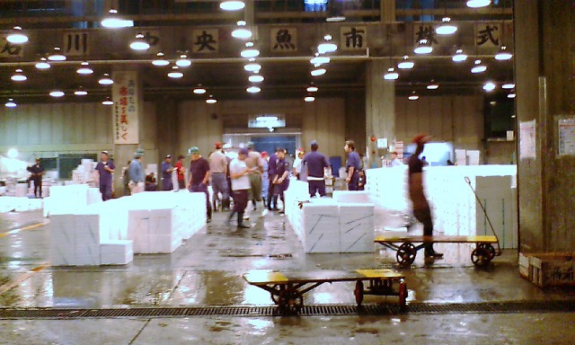 寝ぼけ眼の我々面々を、まるで場違いな異種の生物であるかのように、活気溢れるざわめくような空気が包み込み、3時30分、開始の合図と共に、場内4箇所で一斉にセリが始まりました。