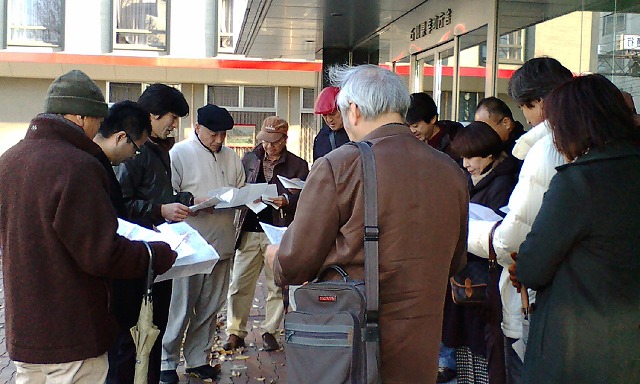 午後3時、「雨嵐」の予報に不安げに傘を持って石川県幸町庁舎前に集合した面々でしたが、いつものように「事前学習」に励む健気な姿が天に通じたのか、雨雲は吹き払われ「薄日和」と、探訪には絶好の空模様となったのでした。