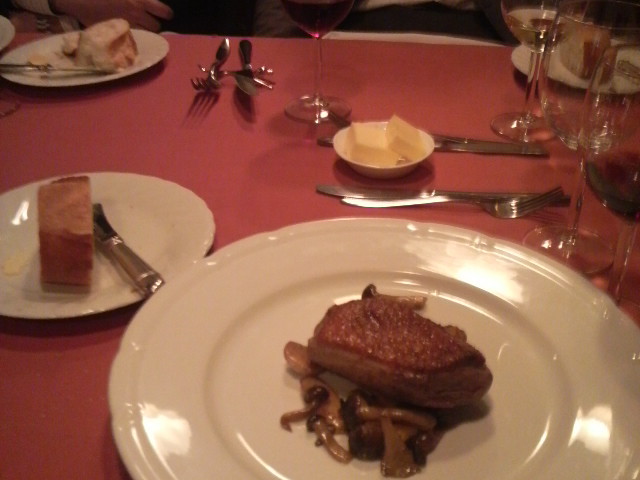 写真はメインディッシュの鴨肉のステーキ