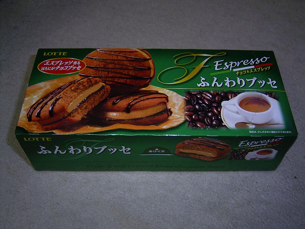 実家の母からのメールによると、最近気に入っているお菓子がロッテ「ふんわりブッセ チョコ&エスプレッソ」であるらしい。そんなにうまいのか、と思って近くのスーパーで買ってみた。