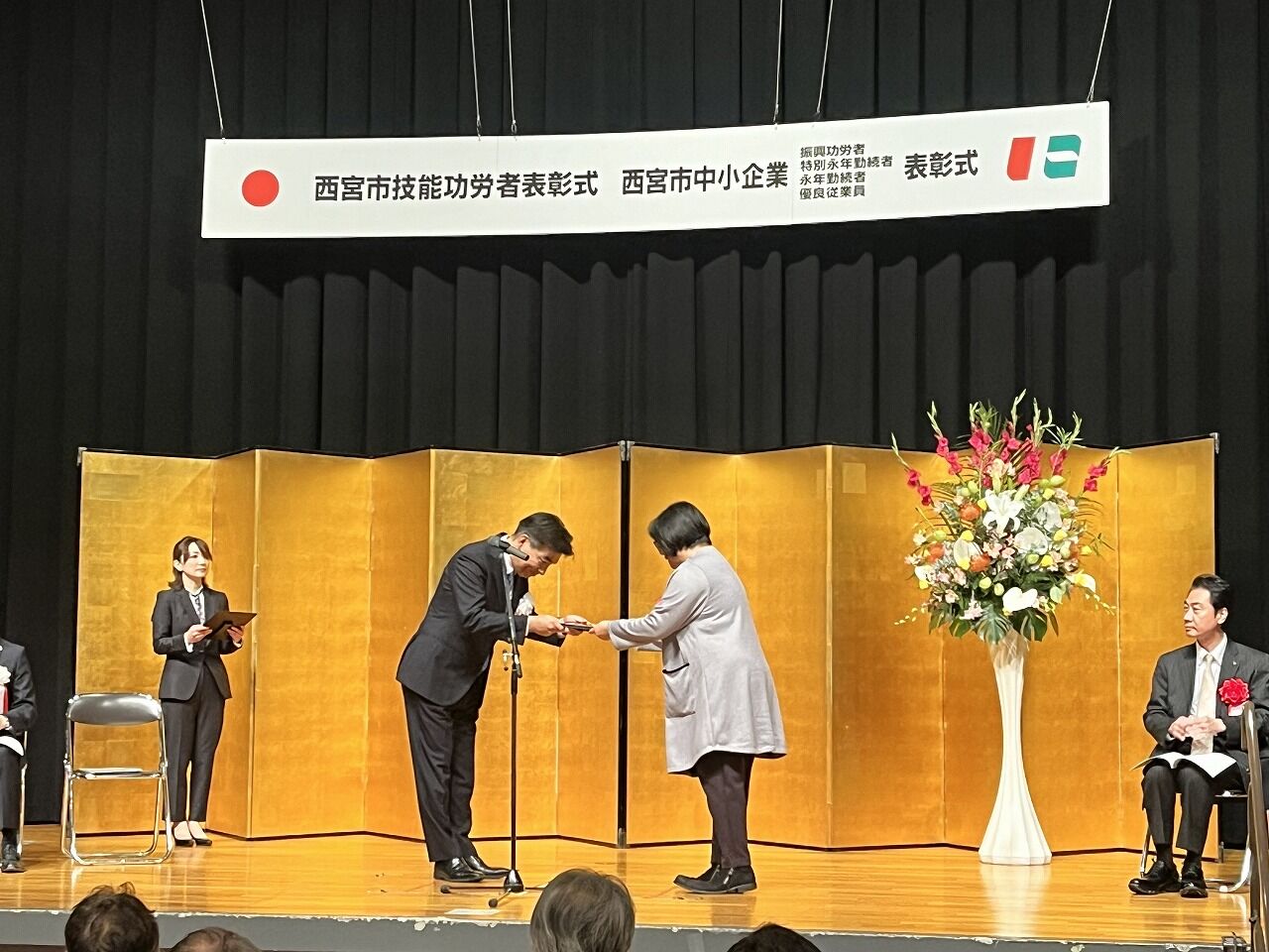 11月14日、令和6年度西宮市中小企業永年勤続者表彰式が開催され、弊社社員1名が表彰を賜りました。