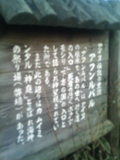 そういえばアフンルパルのすぐ脇には、登別市がたてたアフンルパルの説明の看板がある。随分と立派な看板であるが、ここに至る道がないも同然では、一体どれほどの人がこれを見たものやら、と思ってしまう。