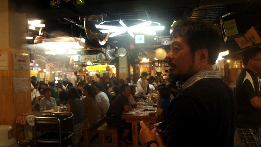 その後一度ホテルに送って貰ってから、夜の街に繰り出しました。ものすごい雨が降ってました。高知は雨が相当降る土地の様です。