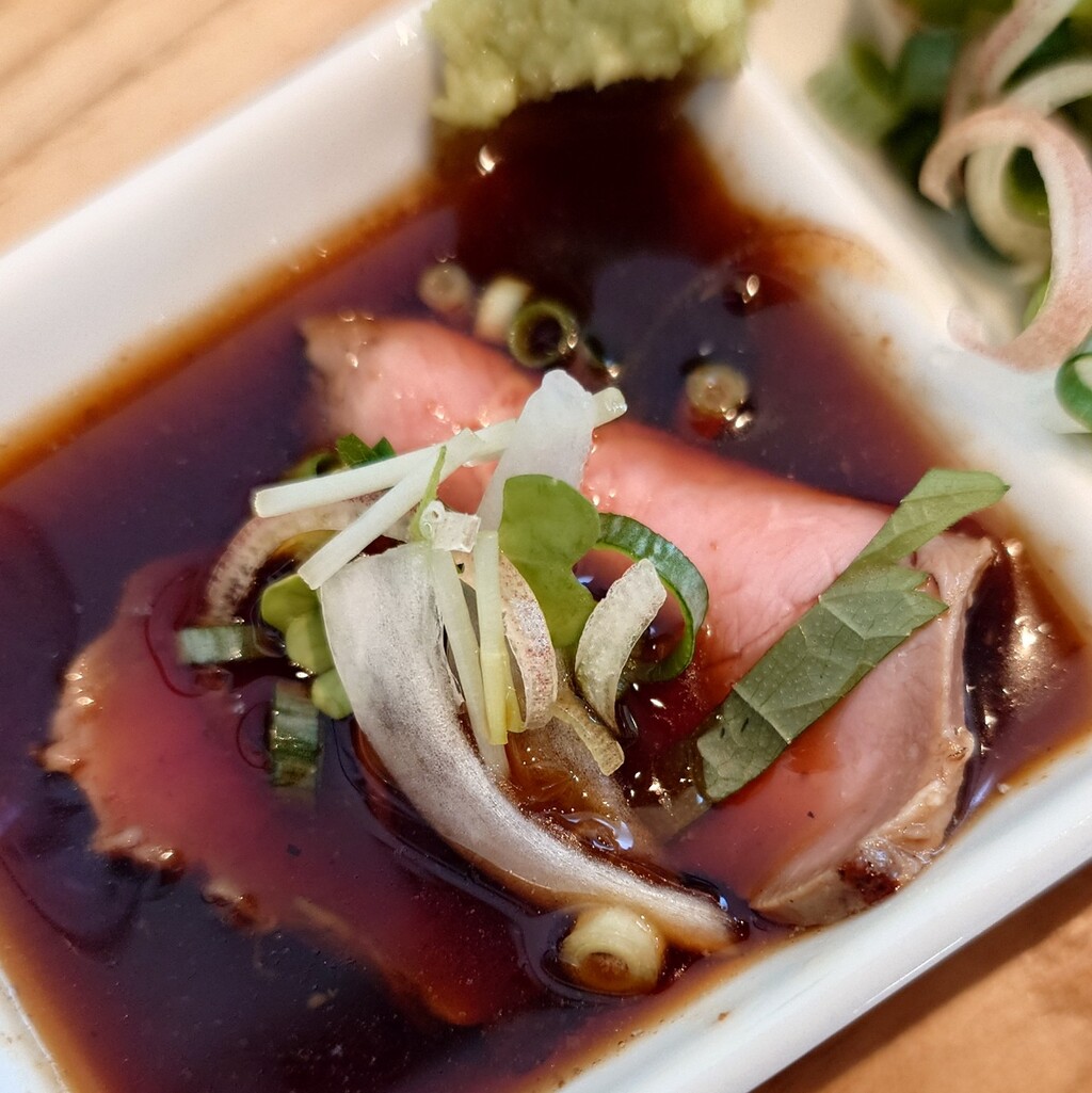 藤枝市岡出山三丁目の麺屋 花枇さんで『冷製ローストビーフ』1,500円です。