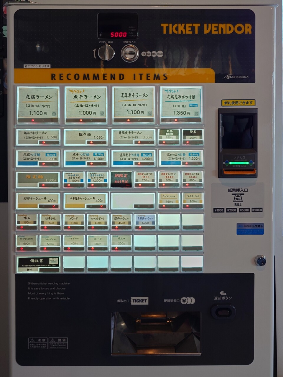 店内に入ると直ぐの左手に券売機が置かれています。