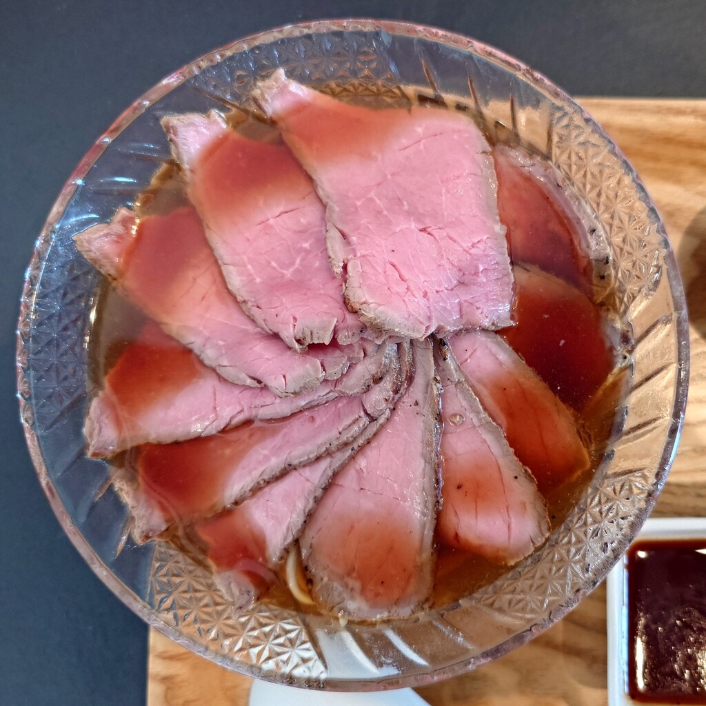 ローストビーフを色んな組み合わせで頬張り、麺を啜りスープを口に運びと楽しみは、無限大です。