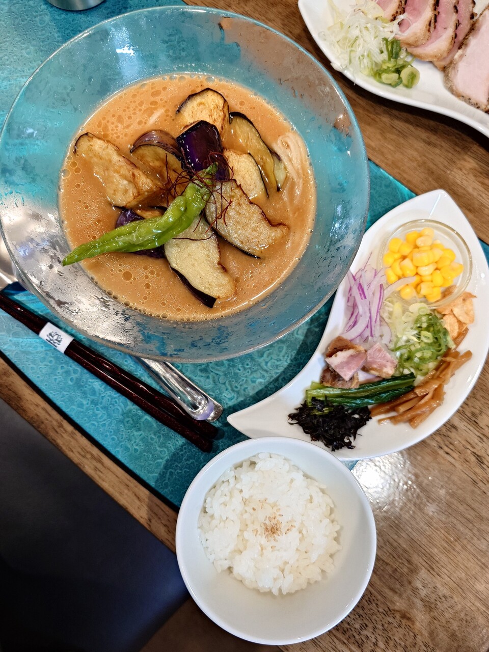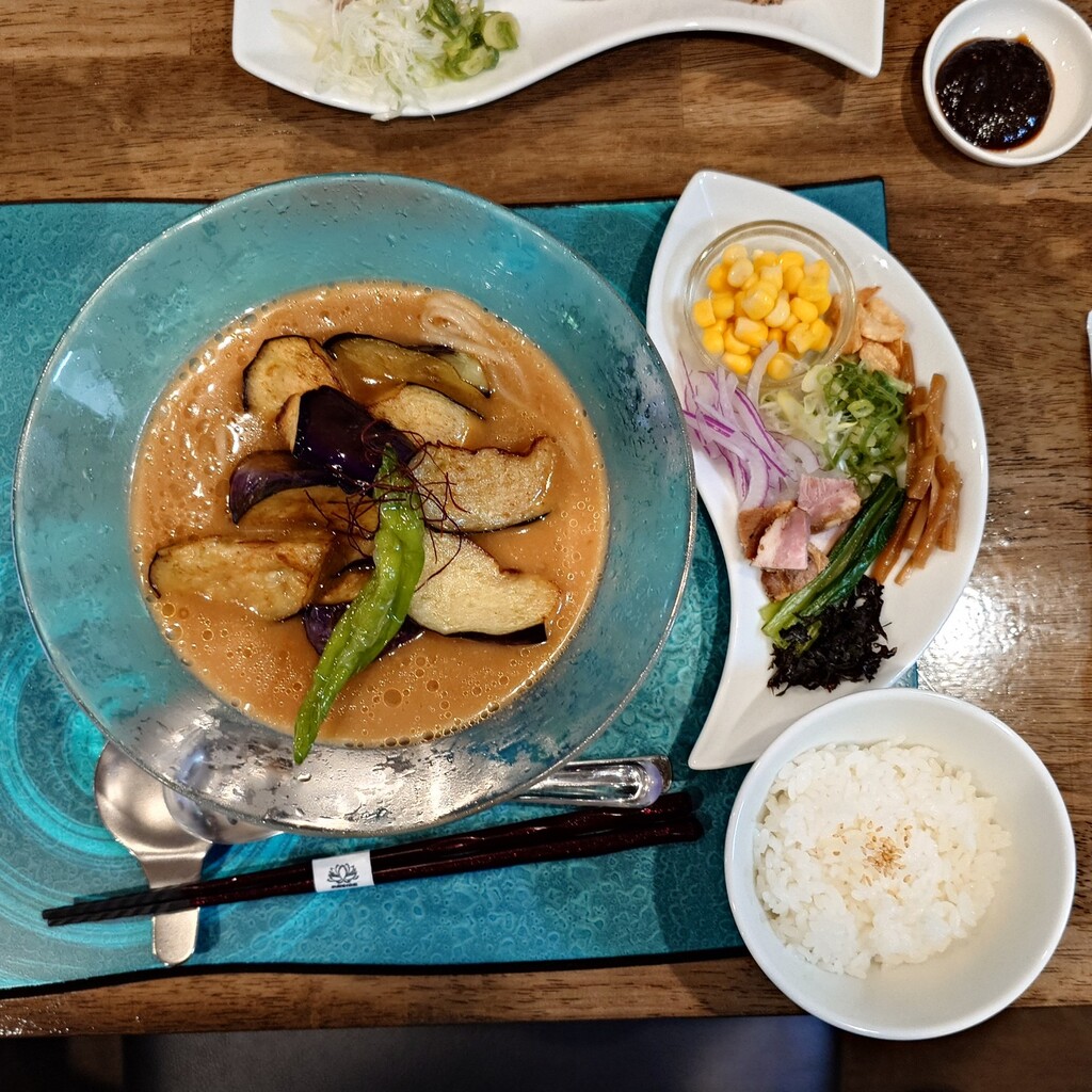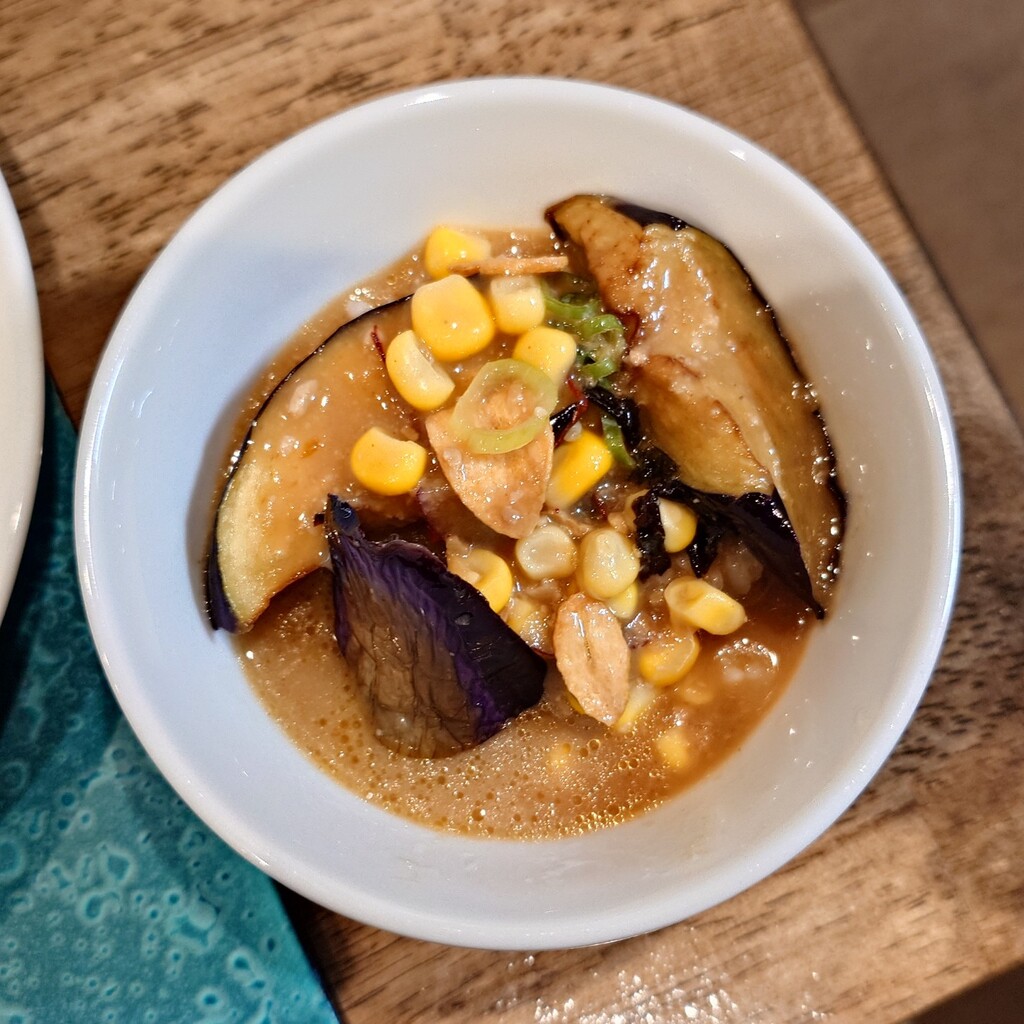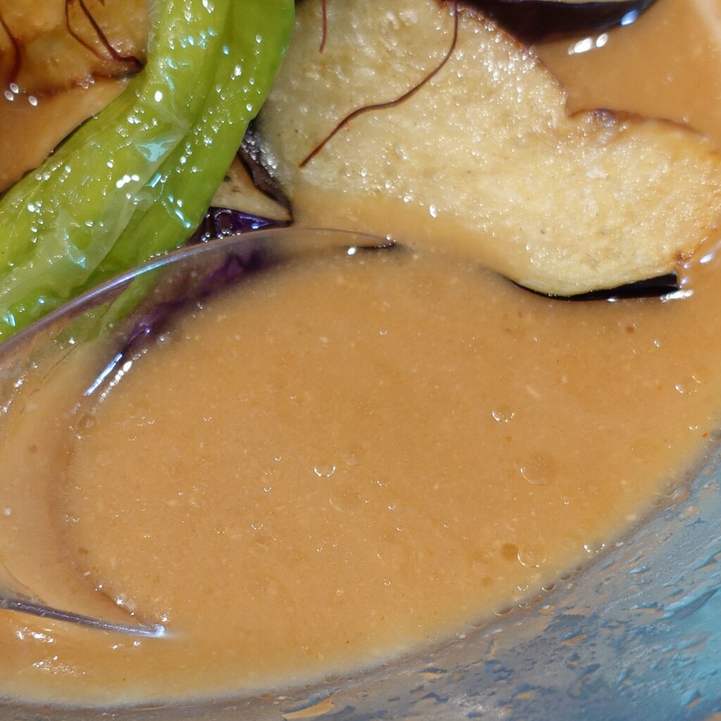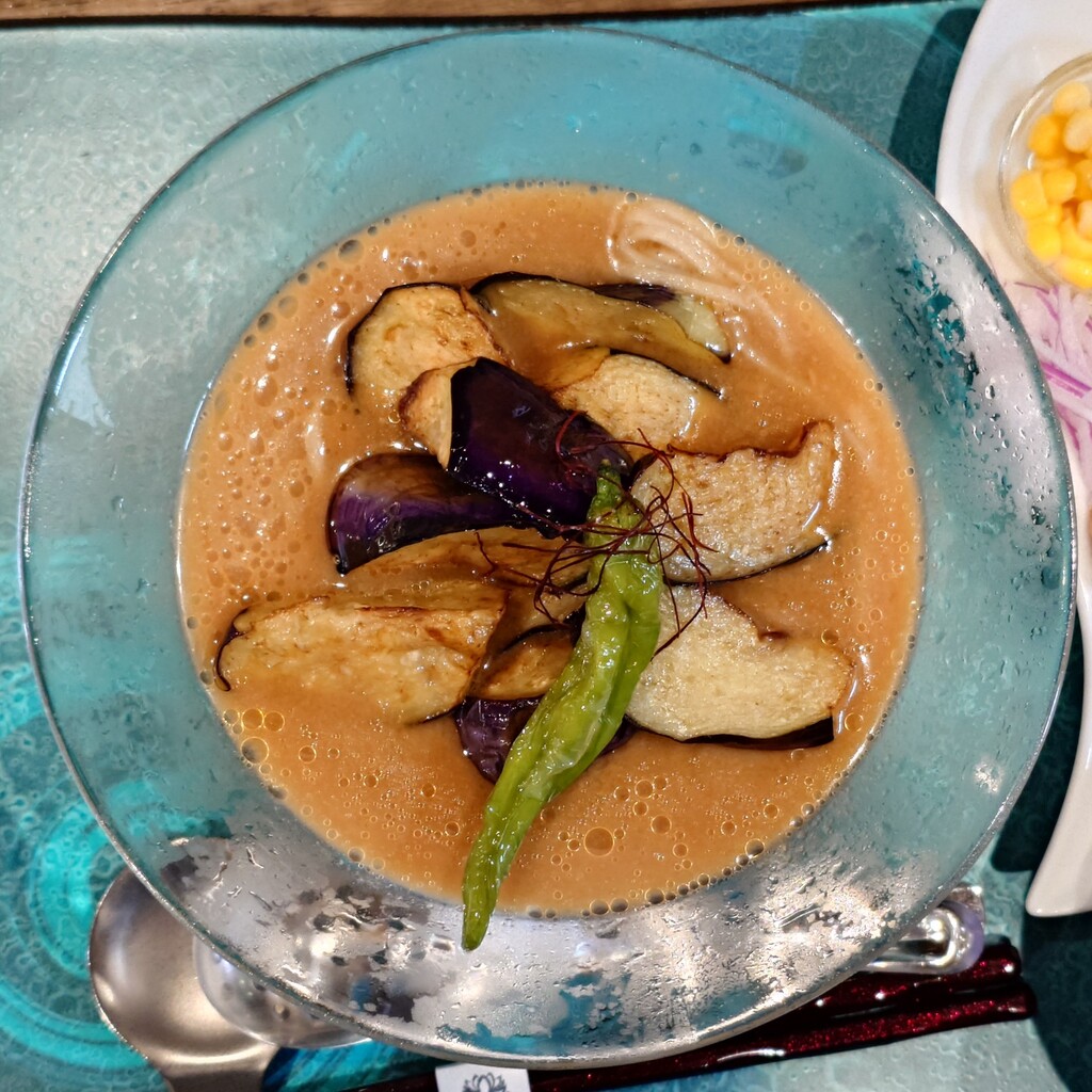 焼津市田尻北のNoodle Dishes 粋蓮華(すいれんか)さんで、『茄子味噌NOODLE~七種の木桶味噌冷製仕立て』+『ちょこっとライス』1,750円+100円です。