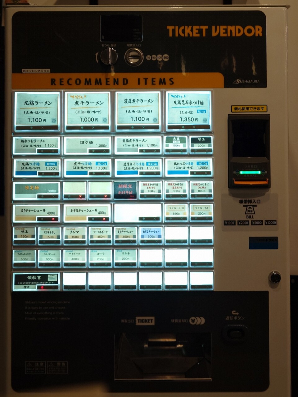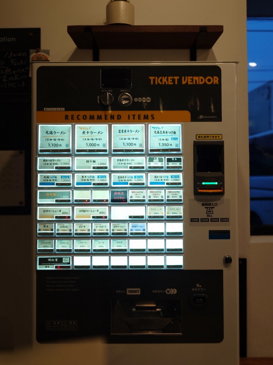 ですから、平日のお休みした日などは、絶好のチャンスなのでできるだけ逃したくありません。店内に入ると直ぐの左手に券売機が置かれています。