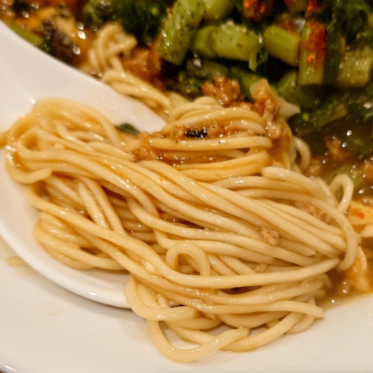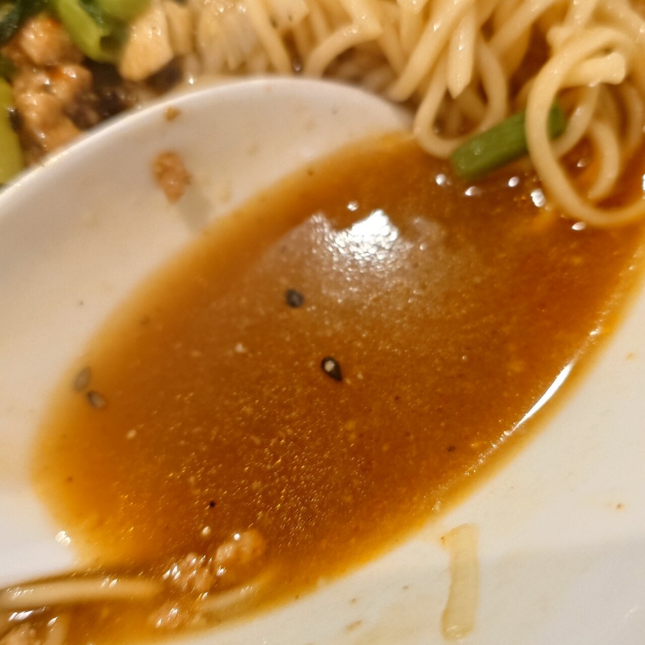 軽やかな旨味のスープに餡や粗挽きミンチからの旨味やコクが溶け込んで、また餡に軽い甘味も有るので実にコク深い味わいです。