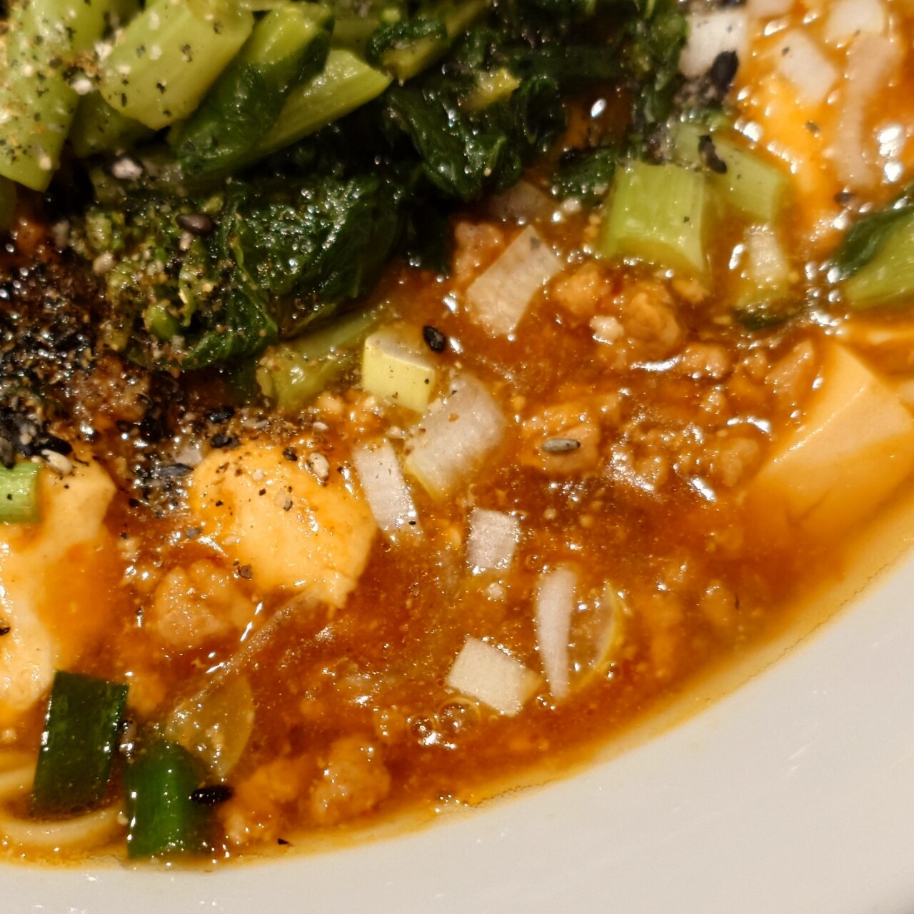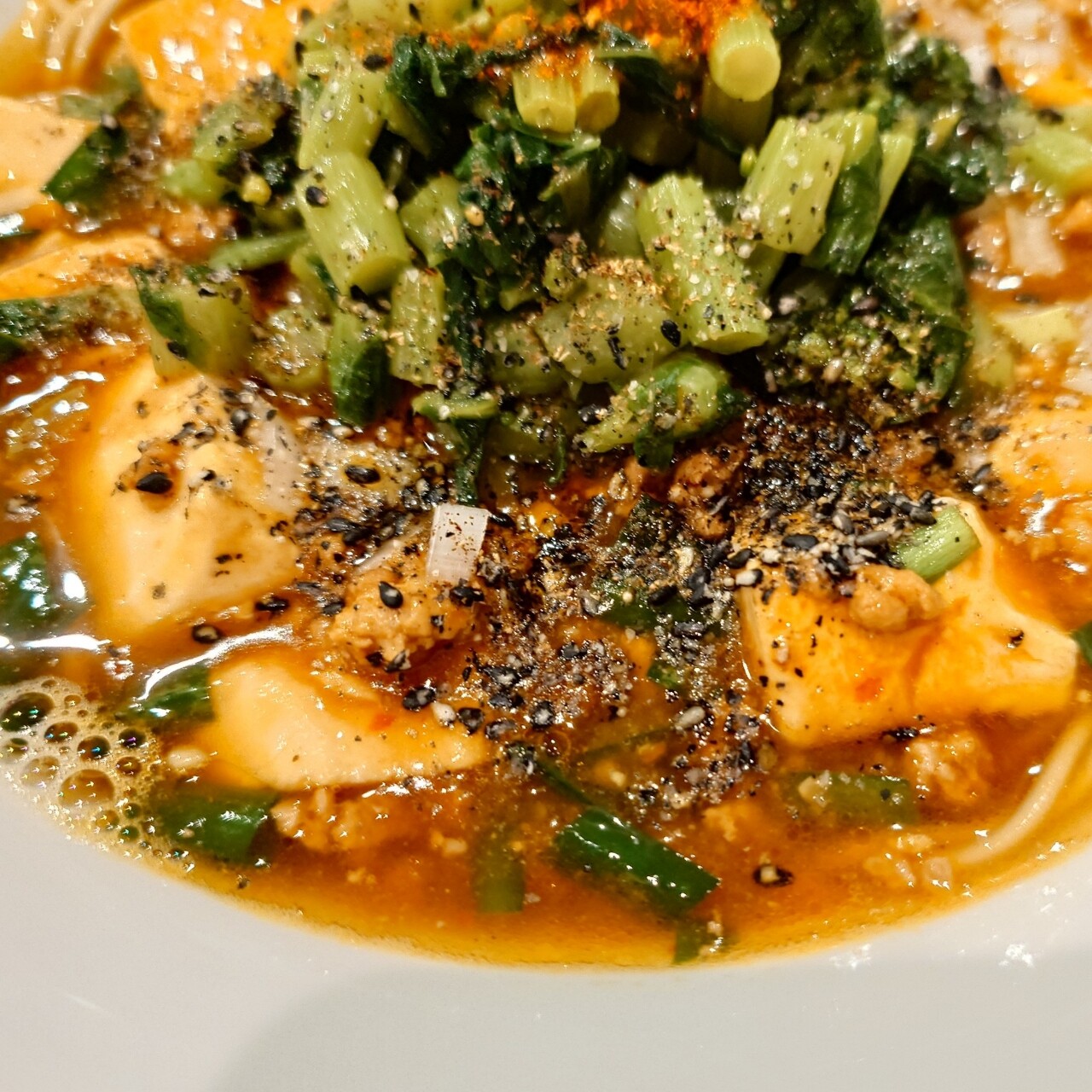 ただマーボー豆腐が掛けられているだけでは無い趣向が凝らされたマーボー麺ですね。