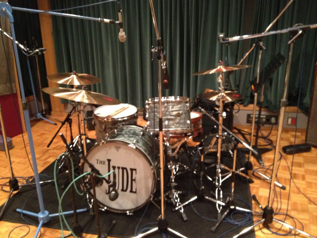 ドラムセットは久々のGretsch!(ヘッドがJUDEのまま!)