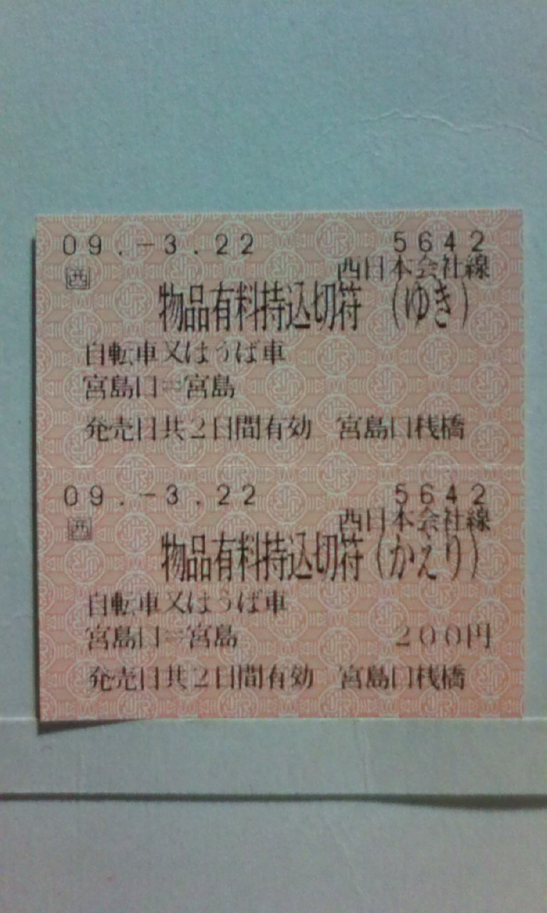 (4-タ)様のブログを見る限り、この券売機はどうやら更新されているようで、今暫くは現役活躍しそうですが、「JR西日本宮島フェリー」名の券売機の自動車航送普通切符、行く度に買うか買わないかまた迷いそうです。