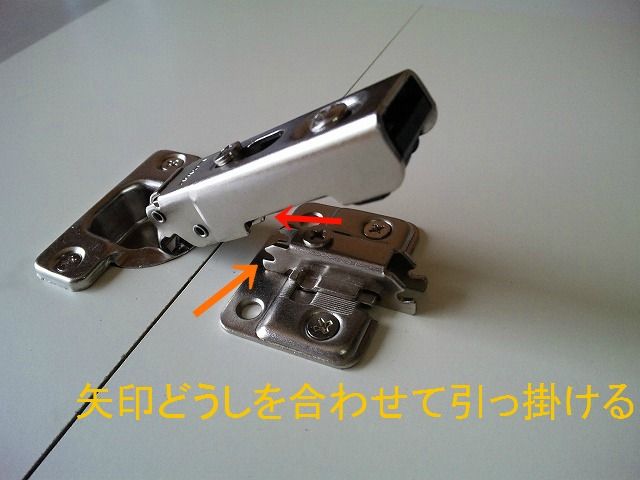 (扉の上部の丁番から取り付けると、楽にできます)