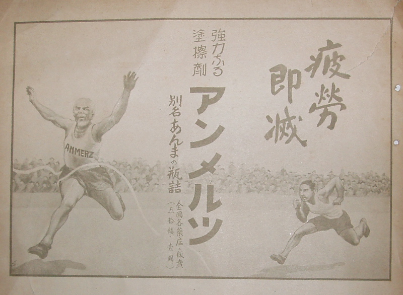 全然関係ない話だが、皆さんは「アンメルツ」という商品のネーミングの由来をご存じだろうか。知らなかったのは私だけかもしれないが、写真は、先日の古書展で買った大正14年11月20日発行『アサヒスポーツ』(朝日新聞社)臨時増刊「第二回明治神宮競技記念号」の表紙裏の広告(クリックすると拡大)。これを見てビックリ! そうだったのですか……。世の中知らないことばかりだ。