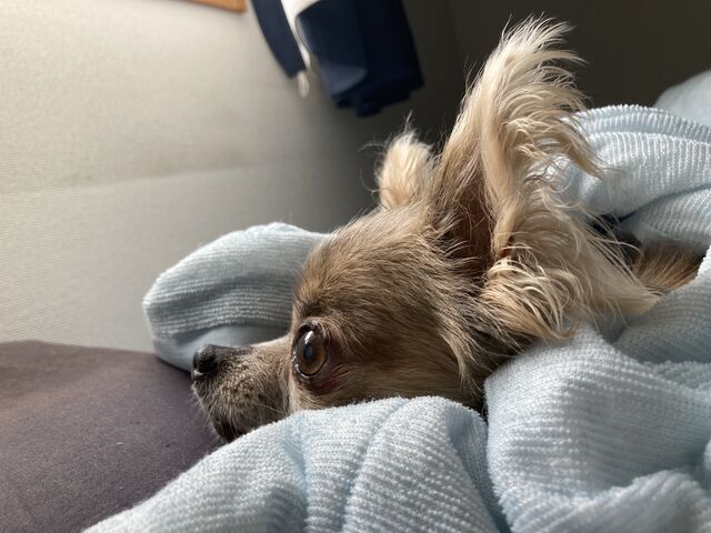 ベットの端にまだあるリテ君のタオルと毛布は