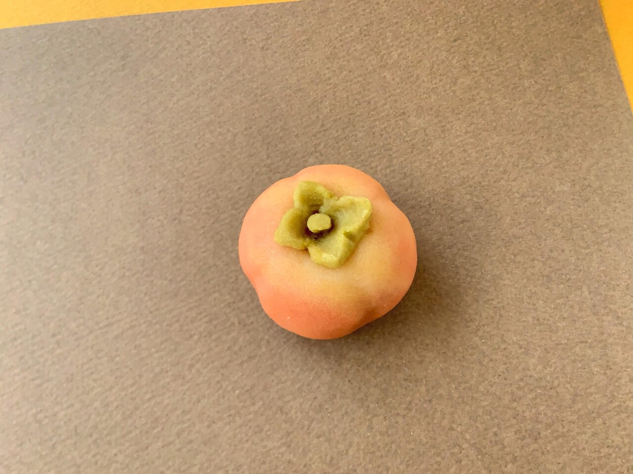 お茶とも縁の深い秋のみのり、柿の実を山の芋をつなぎにした練切でおつくりしました。中は小豆のこし餡です。