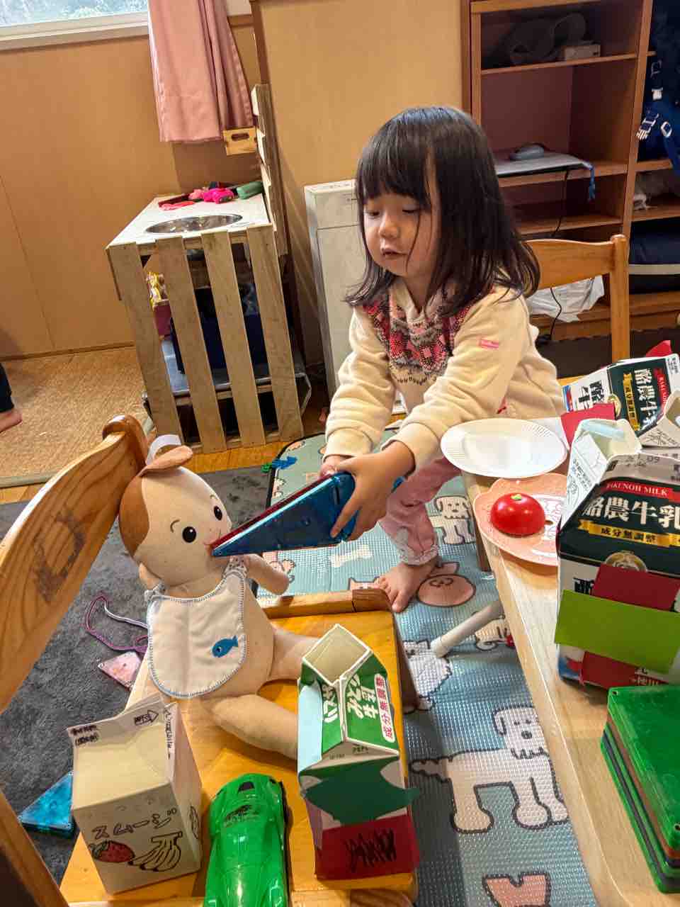 ピクニックごっこから、自然とお店屋さんとお客さんの関係に代わっていったのが楽しかったです
