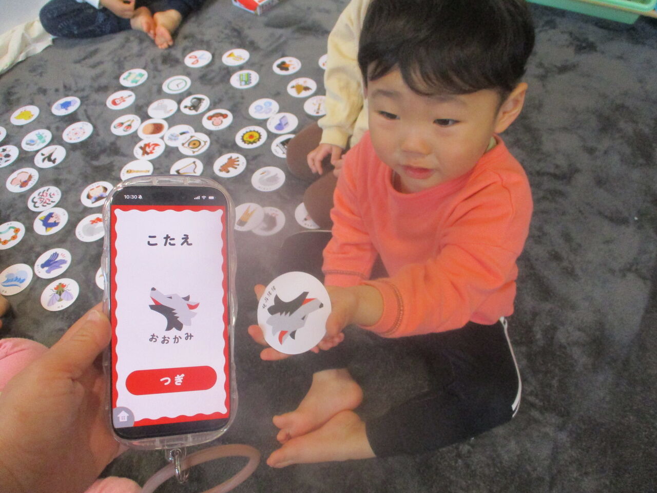 今日はお友達がみんなの前に立って、絵本をめくってくれました