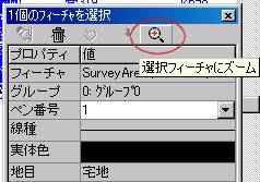 フィーチャ選択モードのプロパティページに「選択フィーチャにズーム」のボタン
