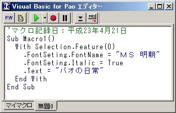 ヘルプ用のサンプルマクロを作っていて、やっぱりちょっと 使いづらいようなところがあって、その度にプロパティやメソッドを強化。 なかなか前に進まない。