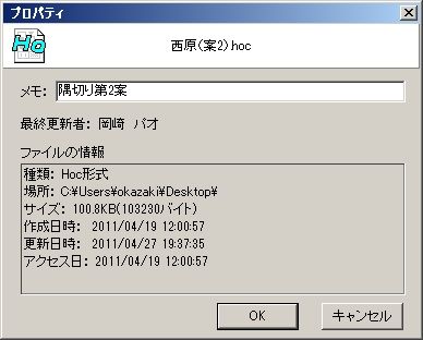 メモの編集をやめて、ファイルのプロパティを表示することにした。